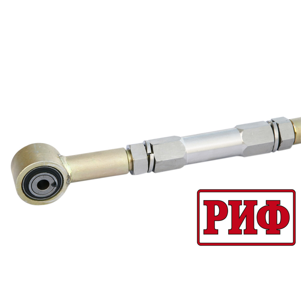 Благодаря регулируемой муфте, которая применена в конструкции тяги Панара РИФ, длину тяги можно отрегулировать в соответствии с изменившимся положением моста автомобиля. Мосты выравниваются и встают на прежнее место, никакого смещения мостов относительно рамы или друг друга уже не происходит. Регулировочная муфта сделана из высококачественной нержавеющей стали, что сильно увеличивает рабочий ресурс в условиях зимы и химических реагентов.