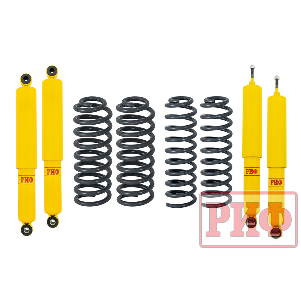 Все компоненты лифт-комплектов РИФ разработаны специально для эксплуатации внедорожника в тяжелых условиях на различных дорожных покрытиях. Рессоры, амортизаторы с технологией R-AIR и пружины РИФ не только компенсируют вес установленного на внедорожнике дополнительного оборудования (бамперов, порогов, дополнительных топливных баков, лебедок и прочего), но также существенно повышают грузоподъемность автомобиля.