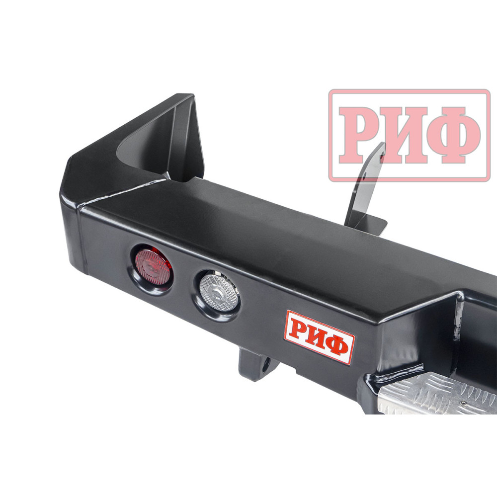 Задний силовой бампер РИФ надежно защитит кузов автомобиля на бездорожье или в городе в случае непредвиденных инцидентов. Бампер оборудован упорами под хай джек и буксирными проушинами для работы с рывковой или буксировочной стропой.