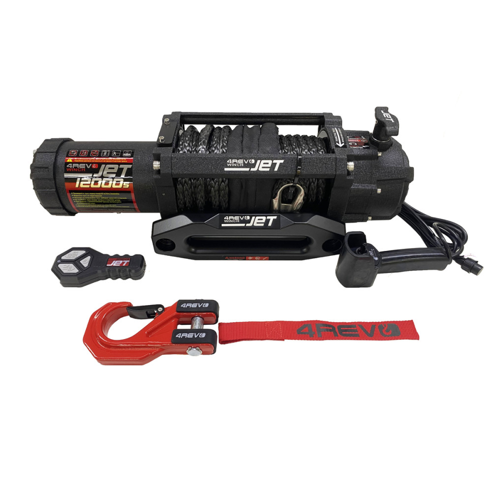 Лебедка автомобильная 4REVO JET 12000s 12В скоростная/ влагозащищенная (Синтетический трос)