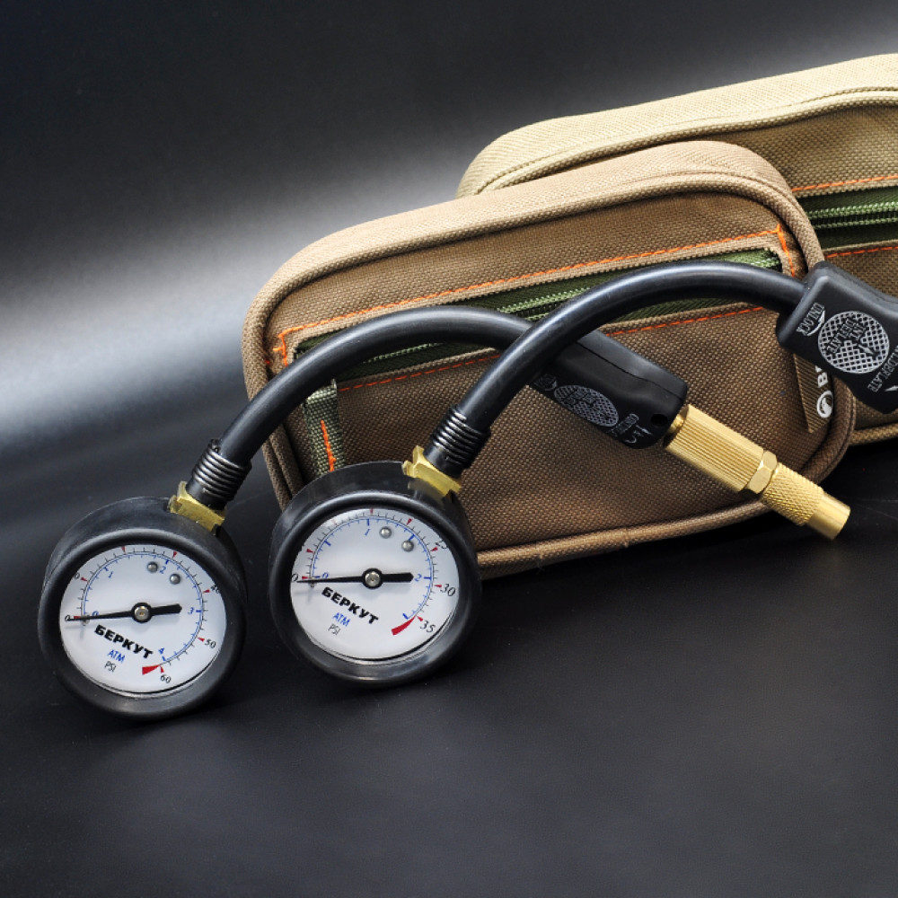 Устройство повышенной точности манометр BERKUT ADG-032. Манометр очень удобен в использовании, так как снабжен специальным спускным клапаном «дефлятором», позволяющим снижать уровень давления в колесе.