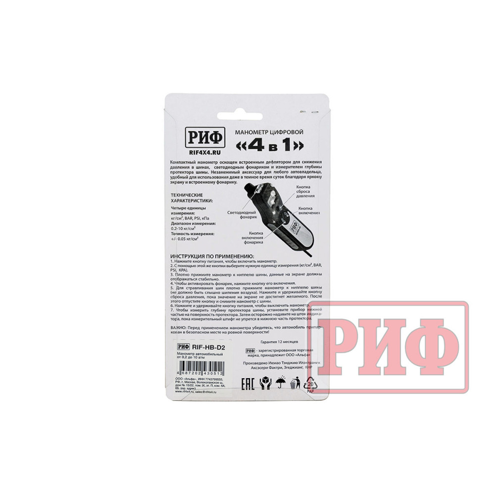 - Четыре единицы измерения: кг/см², BAR, PSI, кПа