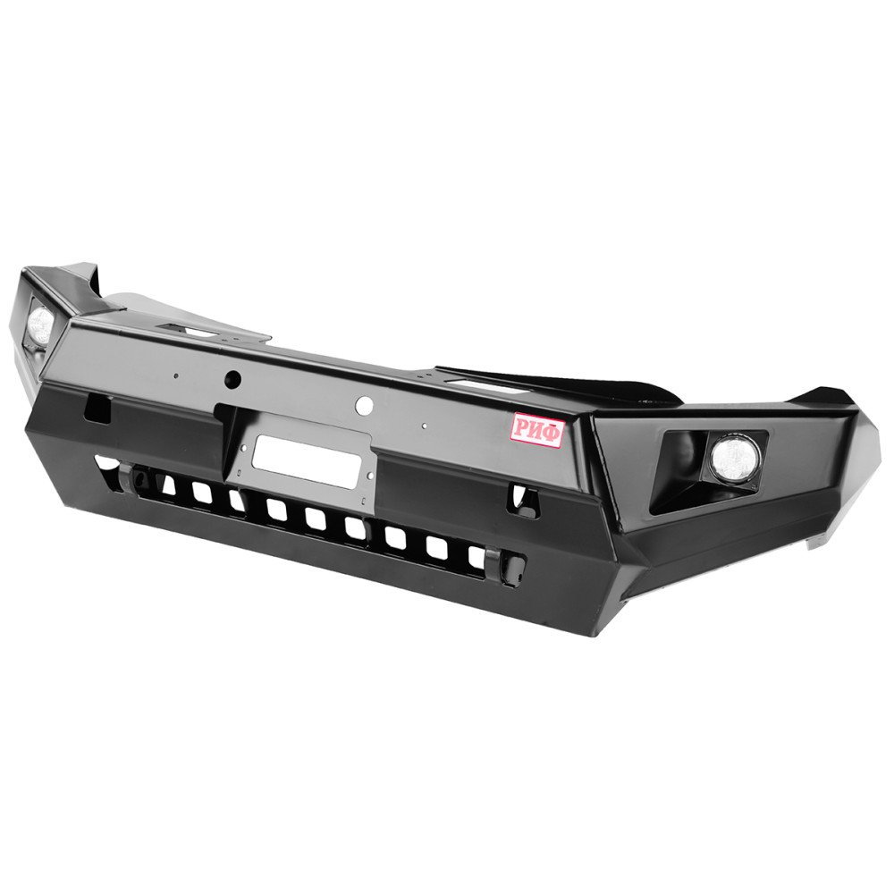 Передний силовой бампер РИФ без защитной дугислужит для защиты автомобиля на бездорожье и в городе. В случае контакта или легкого столкновения с препятствием в виде камней, бревен, пней, колей или незадачливых водителей, риск получить серьезные повреждения машины существенно уменьшается, а это очень важно в экспедициях и в повседневной жизни. Бампер без кенгурина весит меньше, чем бампер с кенгурином, он не только защитит, но и украсит внедорожник благодаря эффектному и элегантному дизайну.