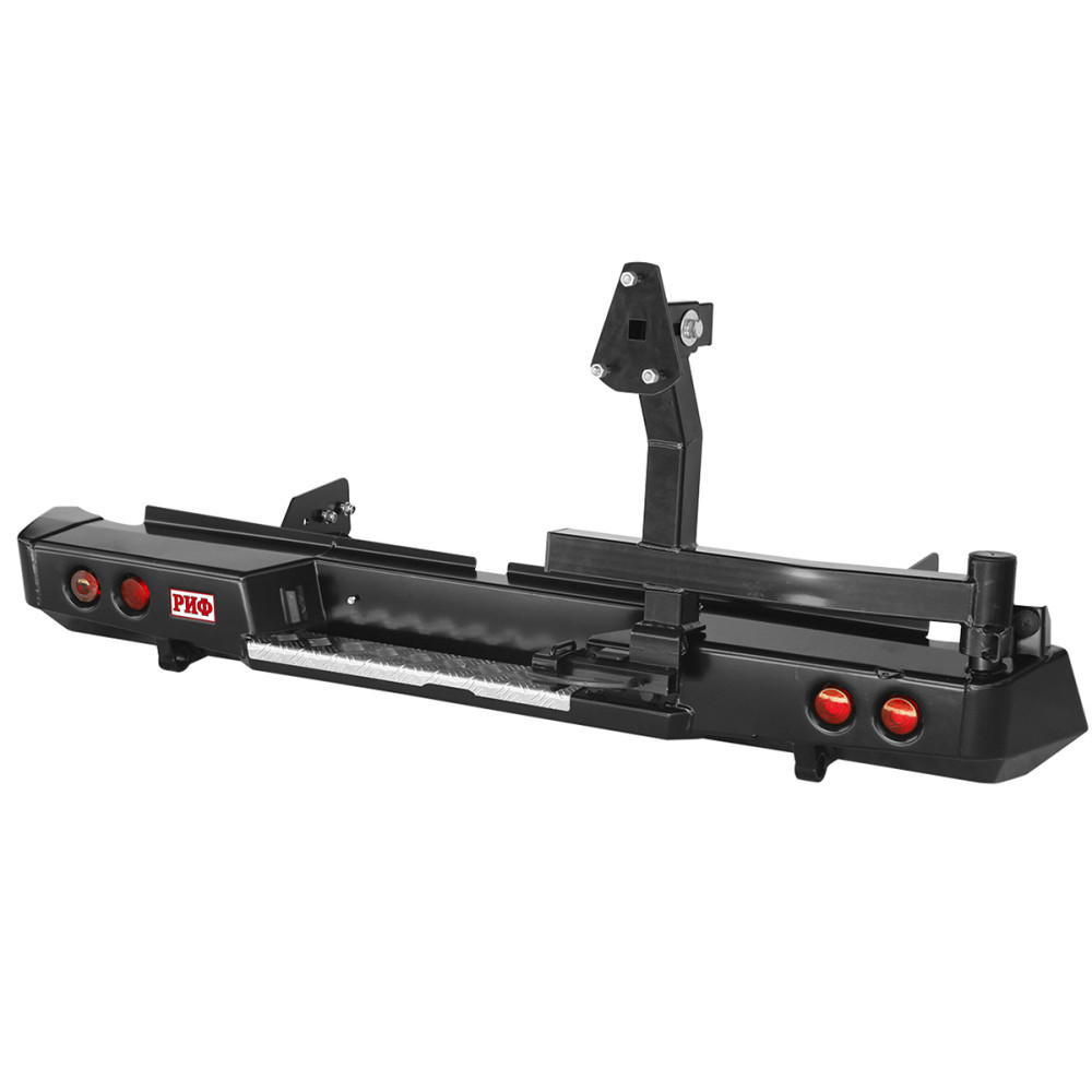 Задний силовой бампер РИФ надежно защитит кузов автомобиля на бездорожье или в городе в случае непредвиденных инцидентов. Бампер оборудован упорами под хай джек и буксирными проушинами для работы с рывковой или буксировочной стропой.