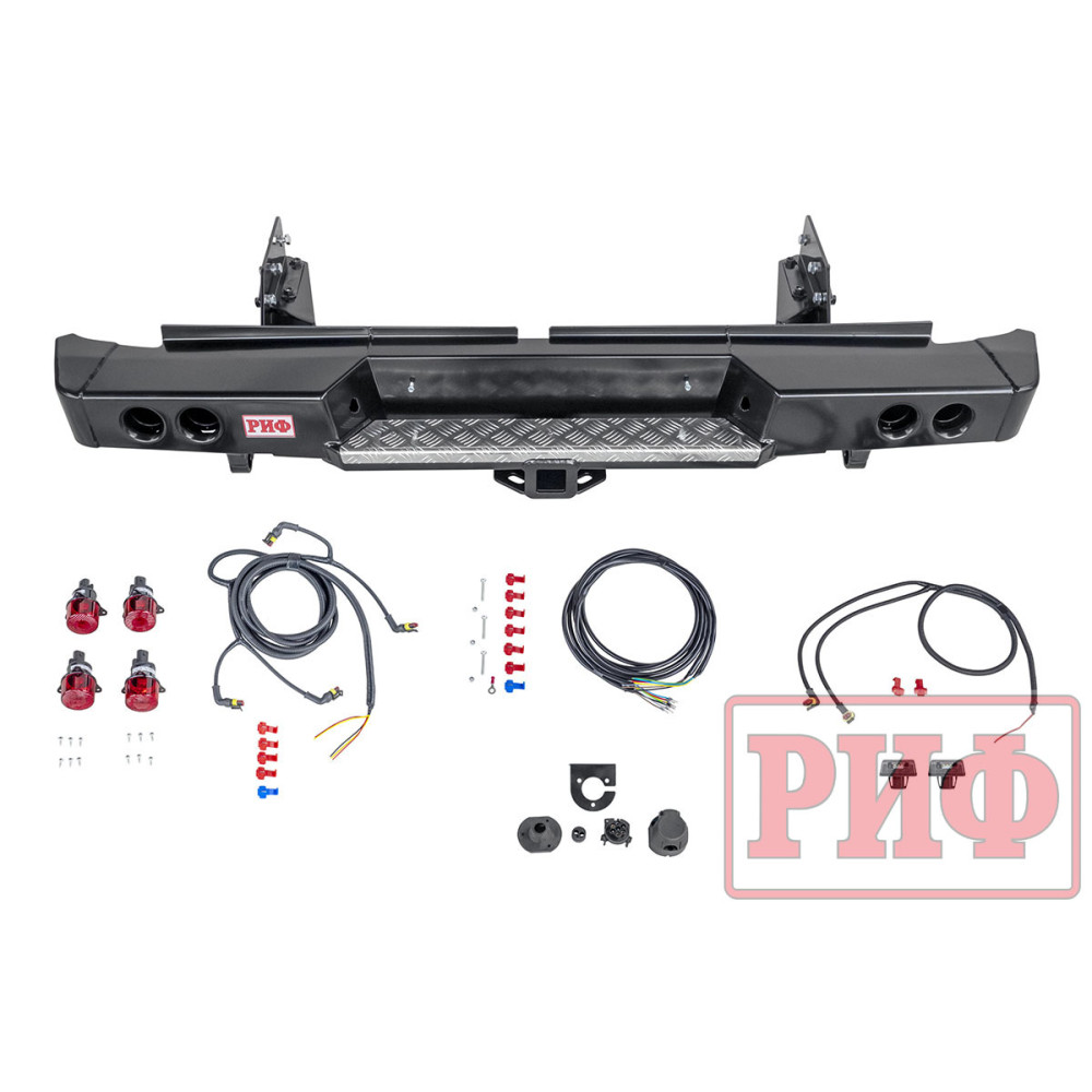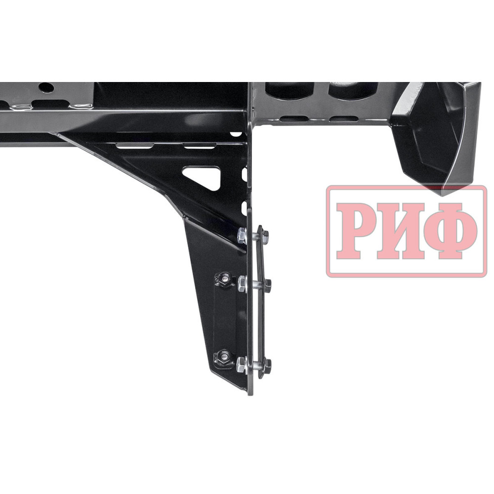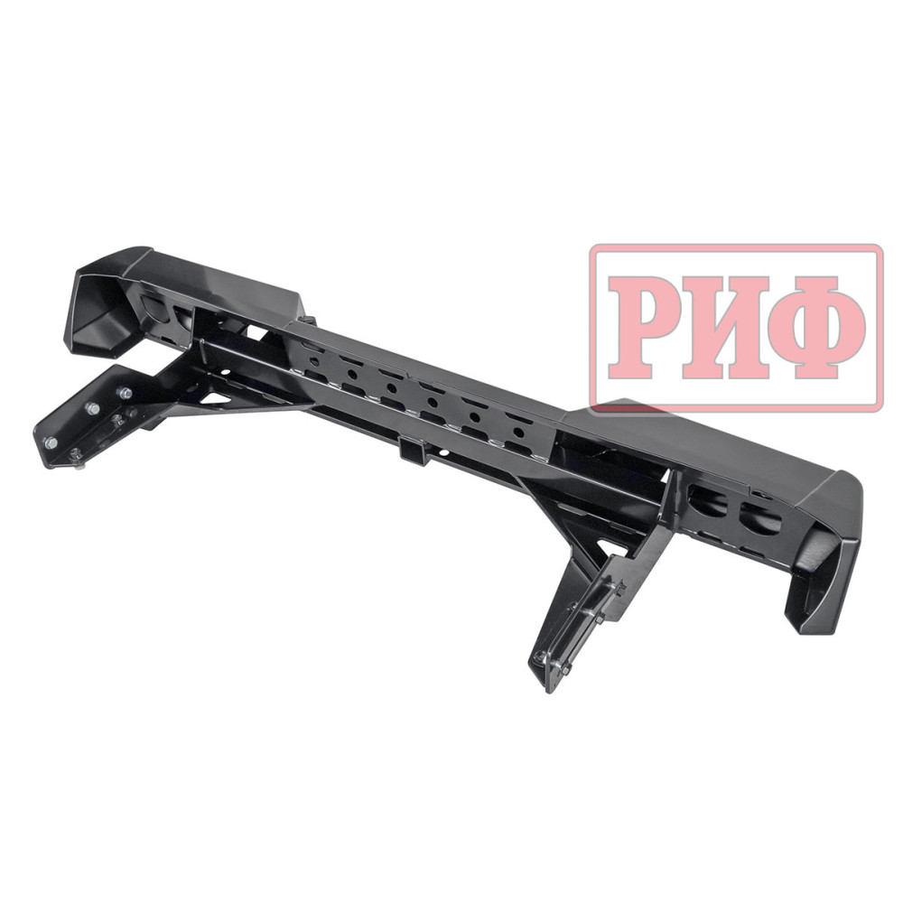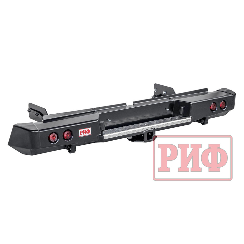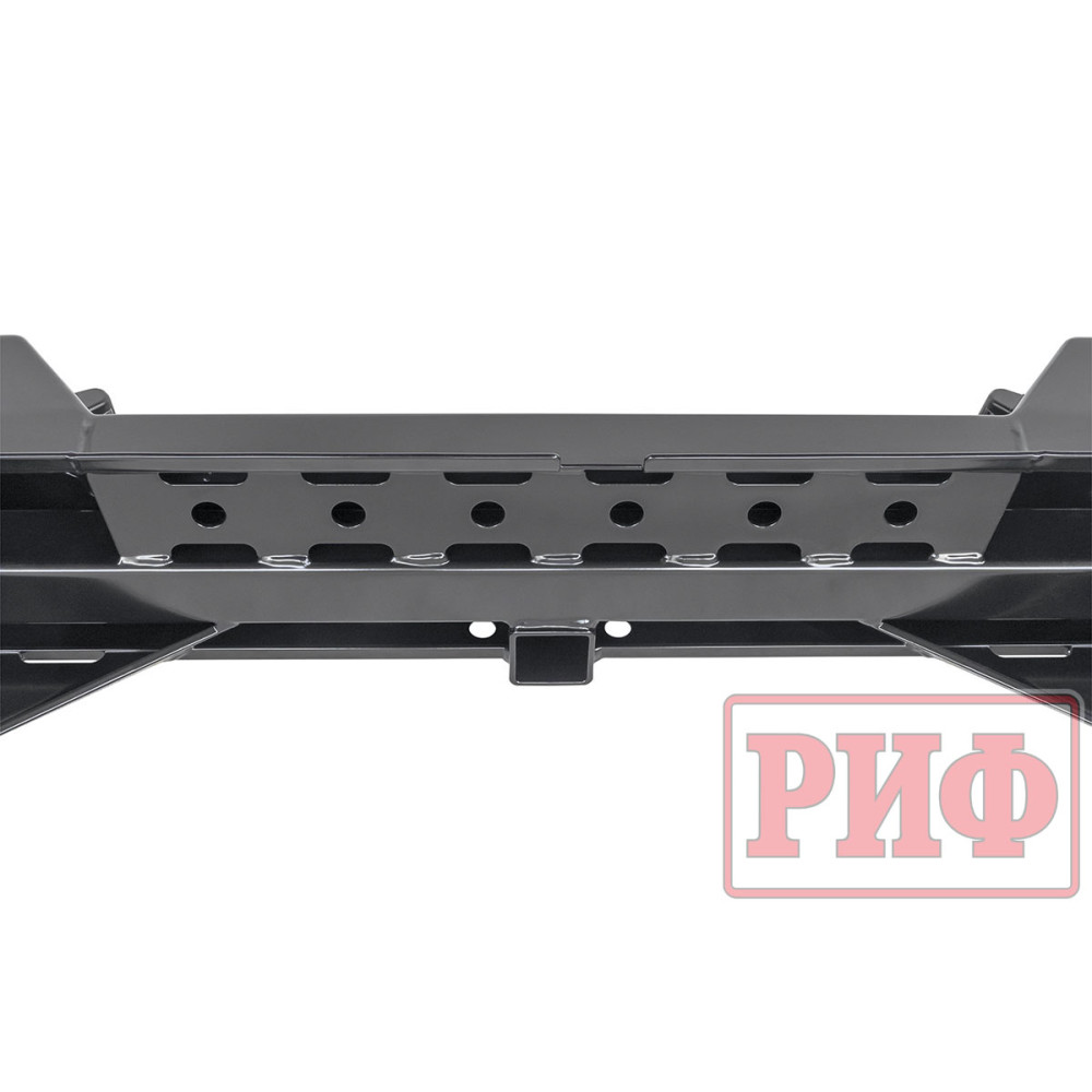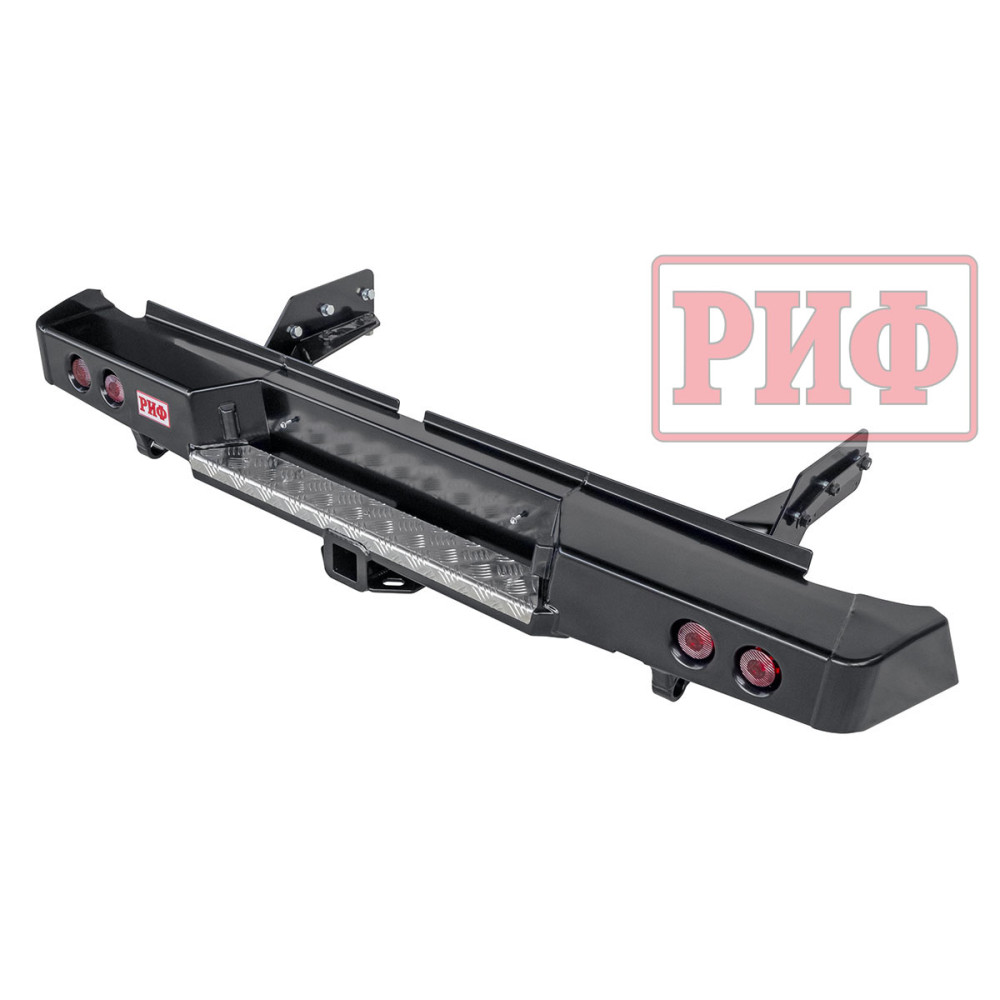 Задний силовой бампер РИФ надежно защитит кузов автомобиля на бездорожье или в городе в случае непредвиденных инцидентов. Бампер оборудован упорами под хай джек и буксирными проушинами для работы с рывковой или буксировочной стропой.