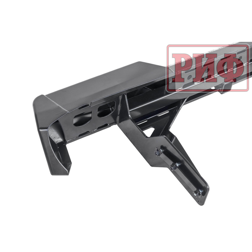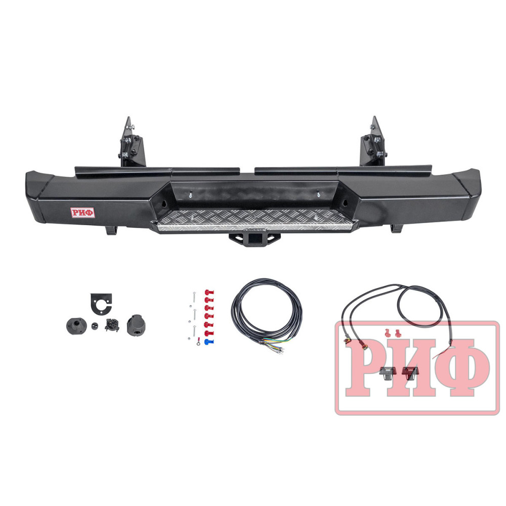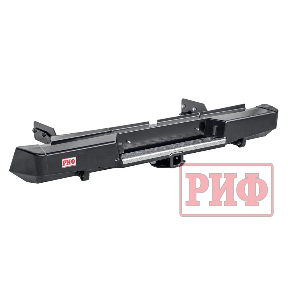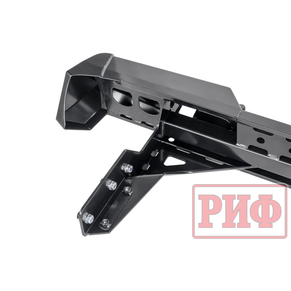Задний силовой бампер РИФ надежно защитит кузов автомобиля на бездорожье или в городе в случае непредвиденных инцидентов. Бампер оборудован упорами под хай джек и буксирными проушинами для работы с рывковой или буксировочной стропой.