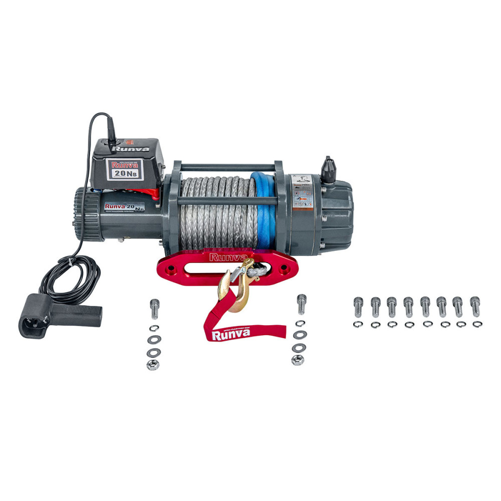 Лебёдка электрическая 24V Runva 20000 lbs влагозащищенная, синтетический трос