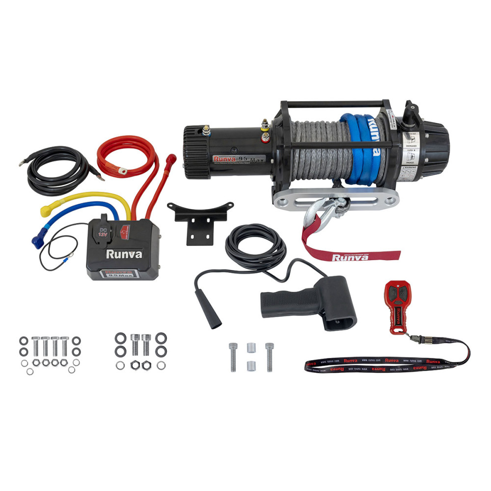 Лебёдка автомобильная электрическая 12V Runva 9500 lbs 4350 кг высокоскоростная, влагозащищенная, синтетический трос