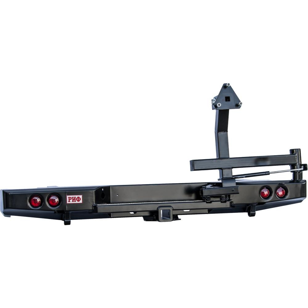 Задний силовой бампер РИФ надежно защитит кузов автомобиля на бездорожье или в городе в случае непредвиденных инцидентов. Бампер оборудован упорами под хай джек и буксирными проушинами для работы с рывковой или буксировочной стропой.