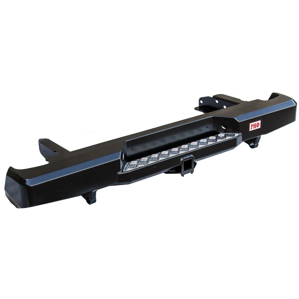 Задний силовой бампер РИФ надежно защитит кузов автомобиля на бездорожье или в городе в случае непредвиденных инцидентов. Бампер оборудован упорами под хай джек и буксирными проушинами для работы с рывковой или буксировочной стропой.