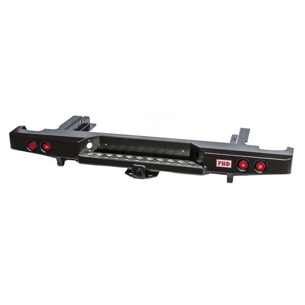 Задний силовой бампер РИФ надежно защитит кузов автомобиля на бездорожье или в городе в случае непредвиденных инцидентов. Бампер оборудован упорами под хай джек и буксирными проушинами для работы с рывковой или буксировочной стропой.