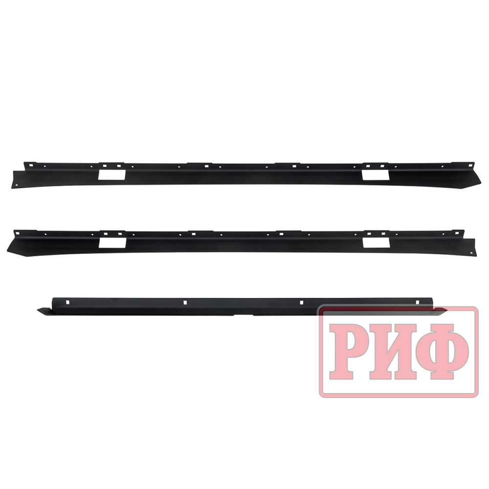Алюминиевый багажник РИФ – это не просто платформа, на которую можно что-то положить, и притянуть подручными средствами к поперечинам, а полноценная система для крепления не только различных по форме и весу грузов, но и многочисленного дополнительного оборудования и инвентаря. В поперечинах, на всю их длину, есть пазы в которые заводятся крепежные болты кронштейнов или кольца для стяжных крепежных ремней. Таким образом точку крепления можно организовать в любом месте платформы. Толщина стенки паза, в который входит болт крепления, - 3 мм, что позволяет ему держать нагрузку на разрыв до 200 кг! Пазы закрыты специальными упругими пластиковыми защитными лентами, имеющими объемную полусферическую форму. Благодаря этому, груз, размещаемый на платформе, не контактирует с собственно алюминием, а лежит на этих лентах. Таким образом, не царапается порошковая краска багажника и сам груз. Также ленты препятствуют попаданию грязи, мусора и воды в пазы.