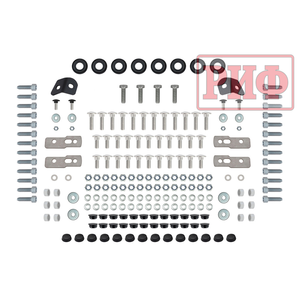 Весь крепеж, который используется в конструкции багажника, в том числе для его сборки и установки, выполнен из высококачественной нержавеющей стали, т.е. со временем не будет никаких ржавых потеков и болты «не закиснут». В случае необходимости, крепеж можно докупить как у нас, так и в любом магазине, продающем крепежные изделия. Багажник поставляется в картонной упаковке с крепежом и подходит только под конкретную модель автомобиля.