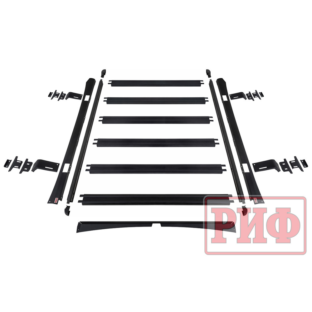 Для данного багажника мы рекомендуем комплект кронштейнов арт. RIF000-99078 (Кронштейны для крепления маркизы (крепежный размер от 61 до 69 мм) к алюминиевому багажнику (платформе) РИФ).
