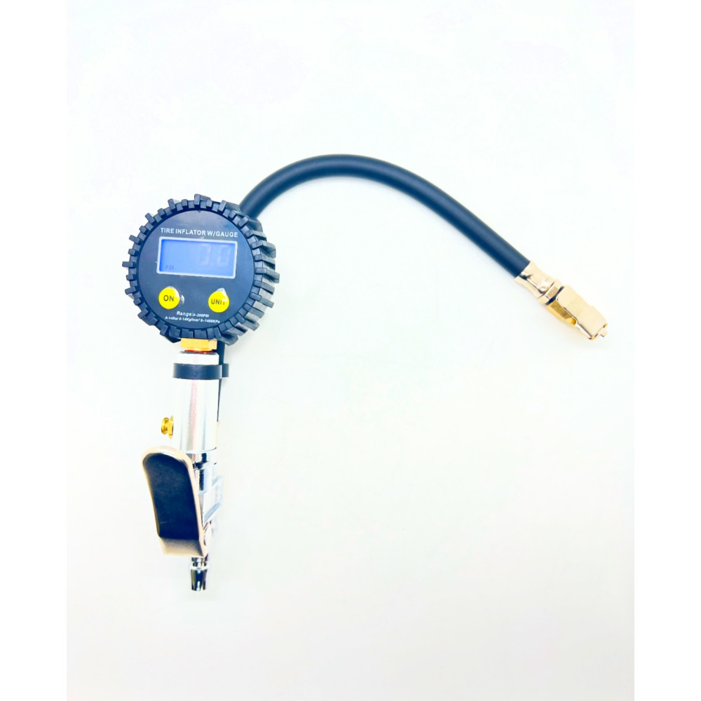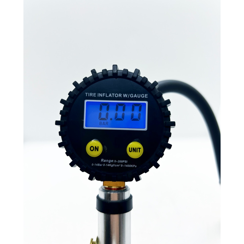 Пистолет для подкачки колёс с электронным манометром до 220PSI или 15bar с плоским курком и с кнопкой стравливания с ЕВРО разъемом под шланг