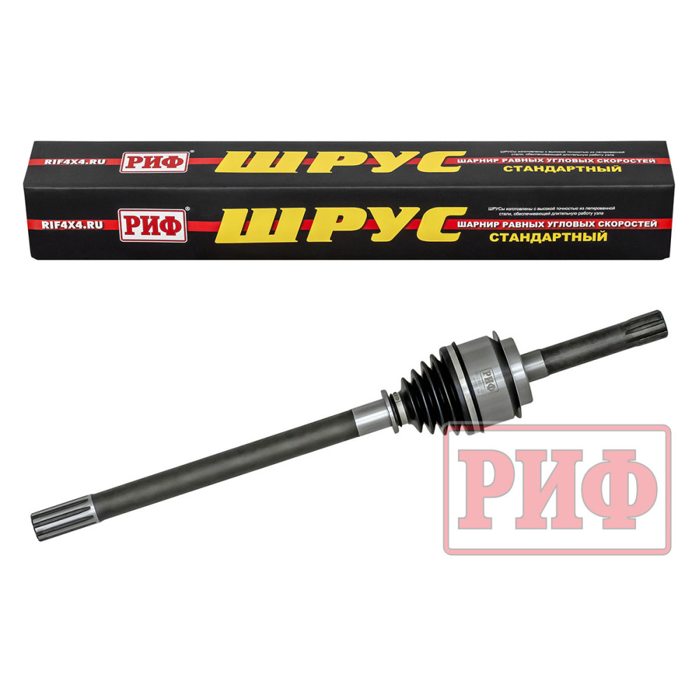 По этой причине, к выбору ШРУСа всегда подходят максимально тщательно. Если внедорожник стандартный, эксплуатируется на штатных или слегка увеличенных колесах, без увеличения мощности двигателя и передаточных чисел трансмиссии, то можно использовать шарнир идентичный по характеристикам заводскому. Стандартный ШРУС РИФ обладает абсолютно одинаковыми характеристиками с заводским шарниром по передаваемому крутящему моменту (4800 Нм) и максимальным углам работы (47 градусов). Он выполнен с высокой точностью из качественной конструкционной легированной стали. На выходе с производства все изделия проходят обязательный контроль качества.