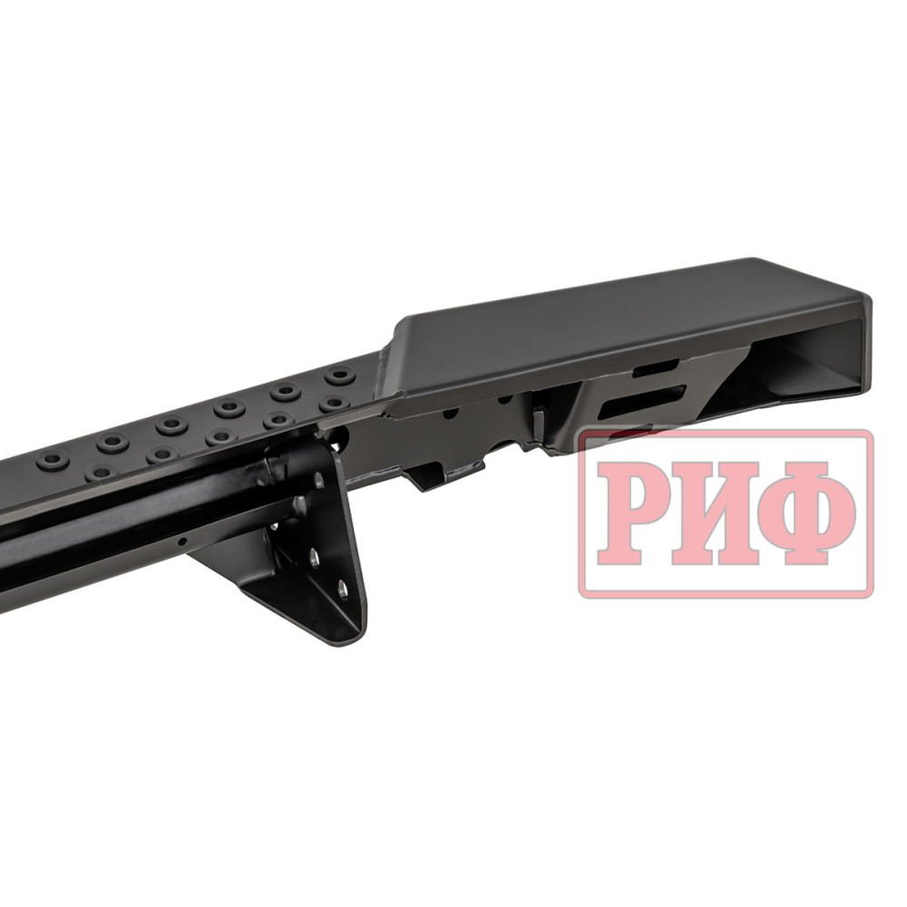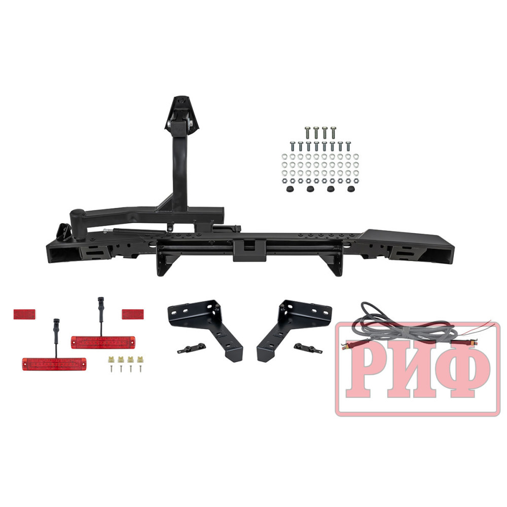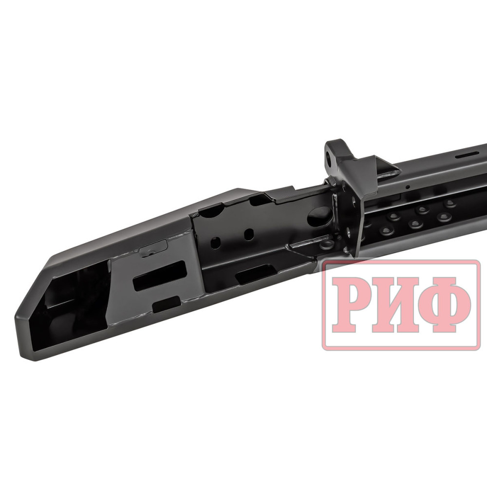 Задний силовой бампер РИФ надежно защитит кузов автомобиля на бездорожье или в городе в случае непредвиденных инцидентов. Бампер оборудован упорами под хай джек и буксирными проушинами для работы с рывковой или буксировочной стропой.