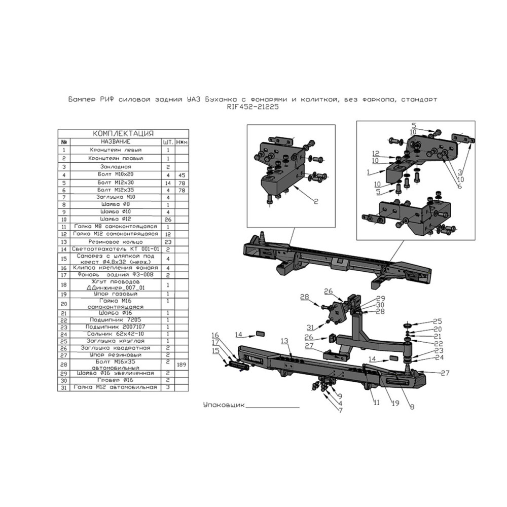 Бампер РИФ силовой задний УАЗ Буханка с фонарями, калиткой, возможностью установки фаркопа, стандарт