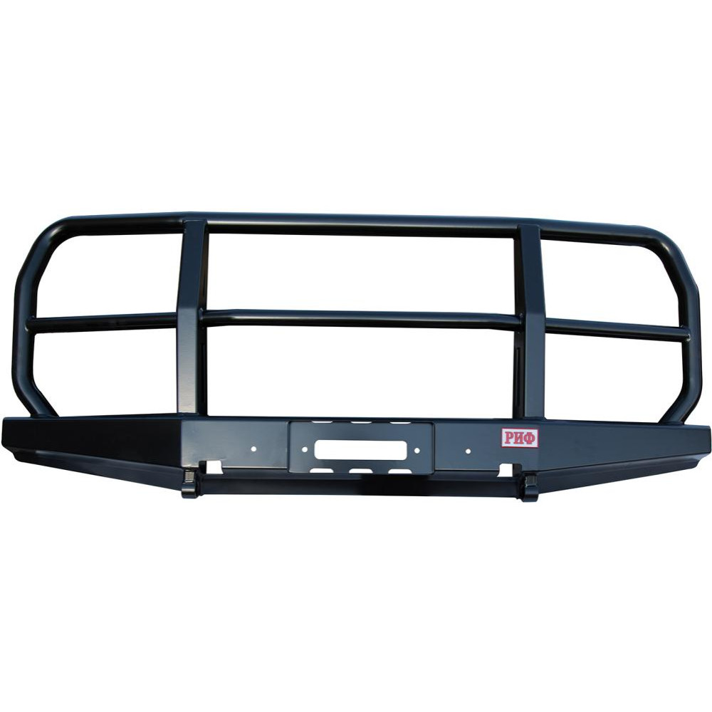 Бампер не оснащен интегрированной площадкой для лебедки, ее нужно докупать отдельно - площадка РИФ устанавливается в раму. В бампере имеется отверстие под трос лебедки. Бампер «РИФ» оборудован мощными упорами под реечный домкрат и буксирными проушинами для работы с рывковым тросом или буксировочной стропой.