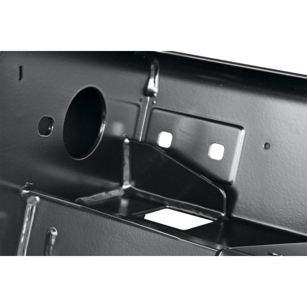 Бампер оснащен интегрированной площадкой для лебедки и оборудован мощными упорами под реечный домкрат, а также буксирными проушинами для работы с рывковым тросом или буксировочной стропой.