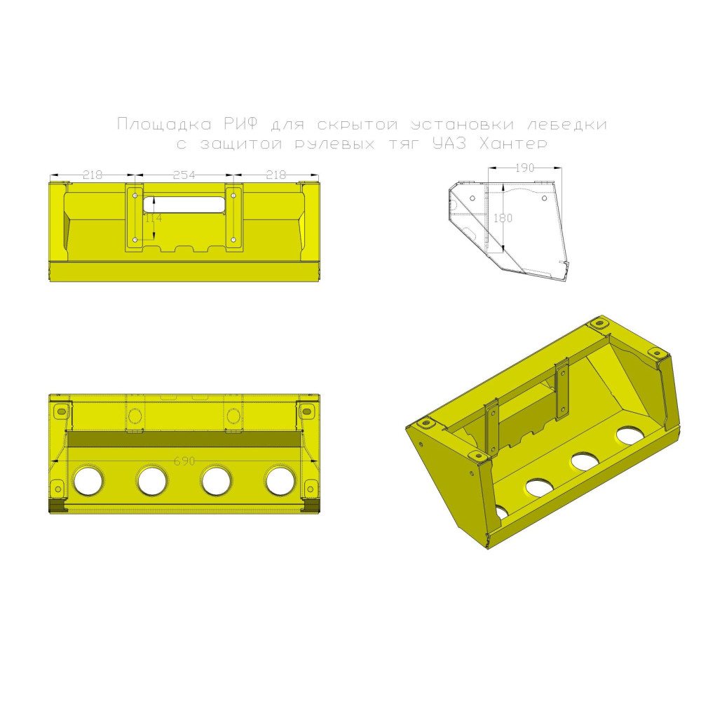 Площадка РИФ для скрытой установки лебёдки с защитой рулевых тяг УАЗ Хантер