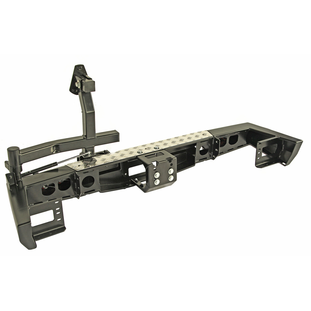 Задний силовой бампер РИФ надежно защитит кузов автомобиля на бездорожье или в городе в случае непредвиденных инцидентов. Бампер оборудован упорами под хай джек и буксирными проушинами для работы с рывковой или буксировочной стропой.