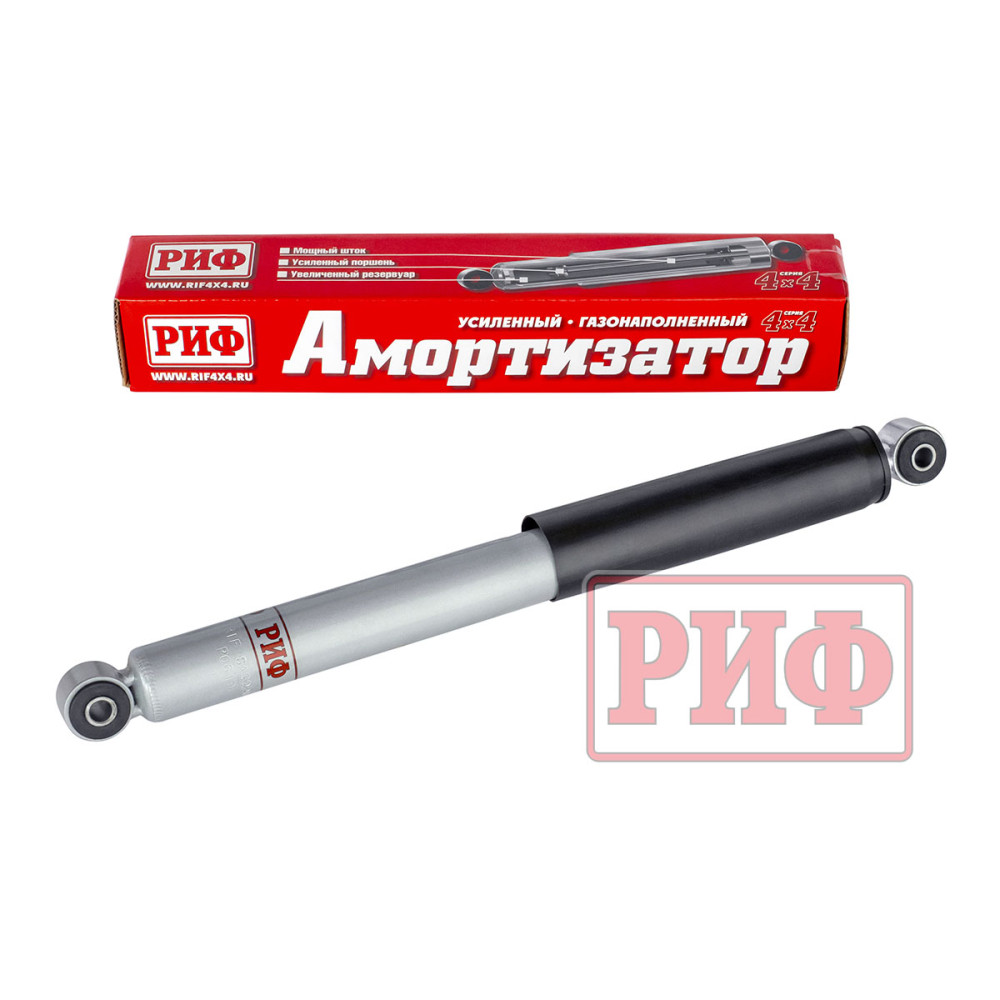 Газ, находящийся под давлением в компенсационной камере наружной трубы, позволяет повысить устойчивость амортизатора к высоким нагрузкам. Масло под давлением газа менее подвержено эффекту кавитации, а значит и меньше вспенивается, в отличие от обычного гидравлического амортизатора. Также, благодаря увеличенному масляному резервуару с большим количеством масла, усиленному штоку и поршню, амортизаторы "РИФ" обладают длительным рабочим ресурсом и обеспечивают великолепную стабильность рабочих характеристик при длительной езде по дорогам общего пользования, отличную курсовую устойчивость, хорошую артикуляцию подвески и приятную плавность хода на бездорожье.