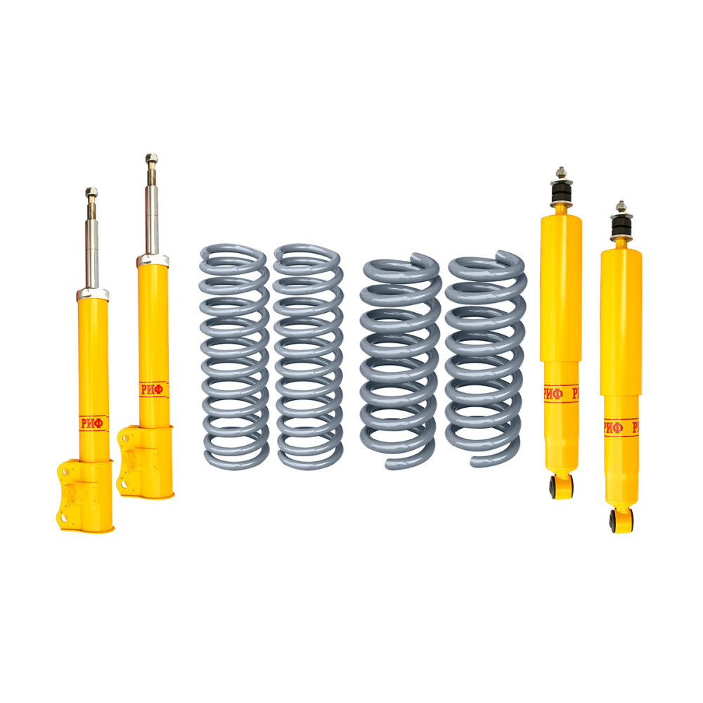 Все компоненты лифт-комплектов РИФ разработаны специально для эксплуатации внедорожника в тяжелых условиях на различных дорожных покрытиях. Амортизаторы с технологией R-Air и пружины РИФ не только компенсируют вес установленного на внедорожнике дополнительного оборудования (бамперов, порогов, дополнительных топливных баков, лебедок и прочего), но также существенно повышают грузоподъемность автомобиля.