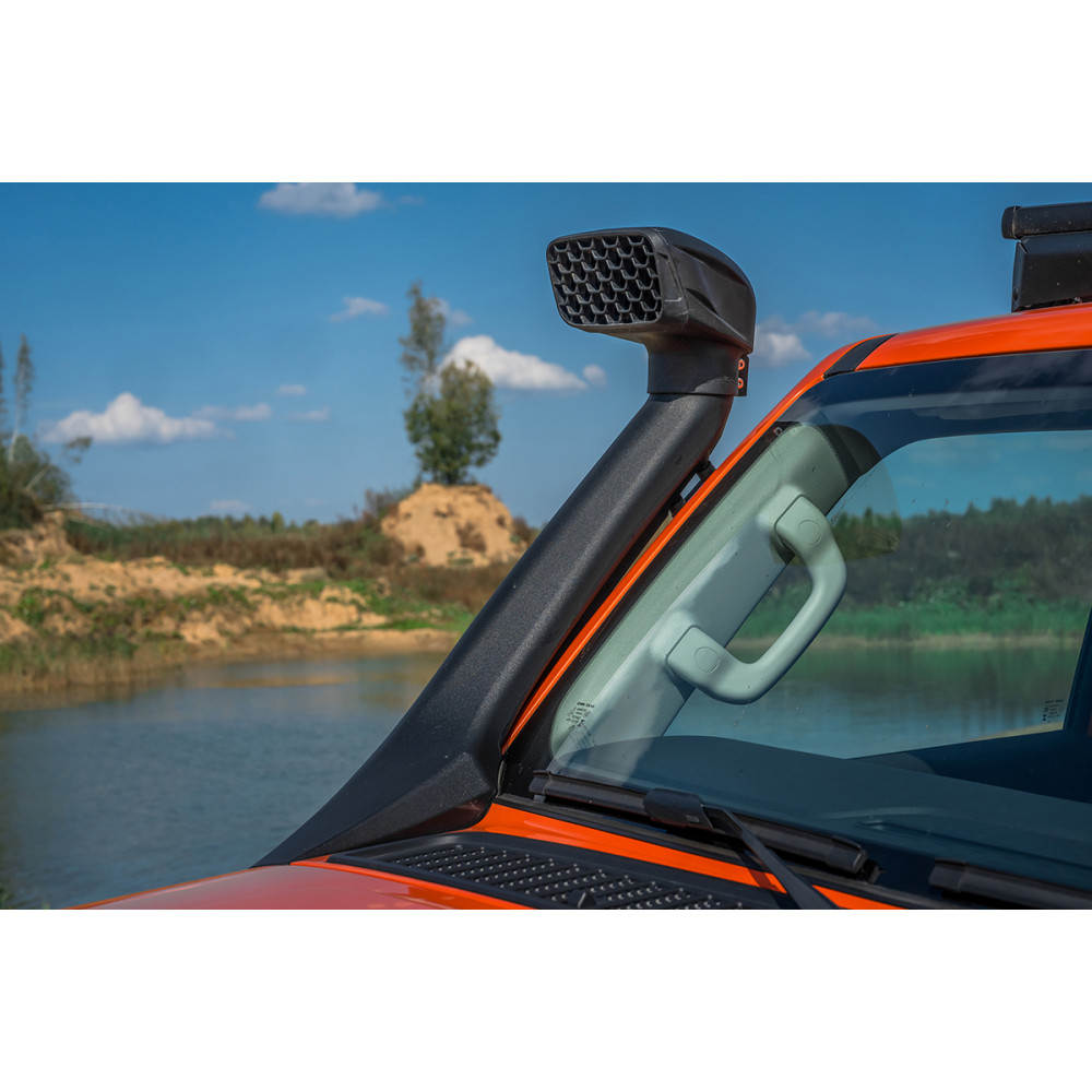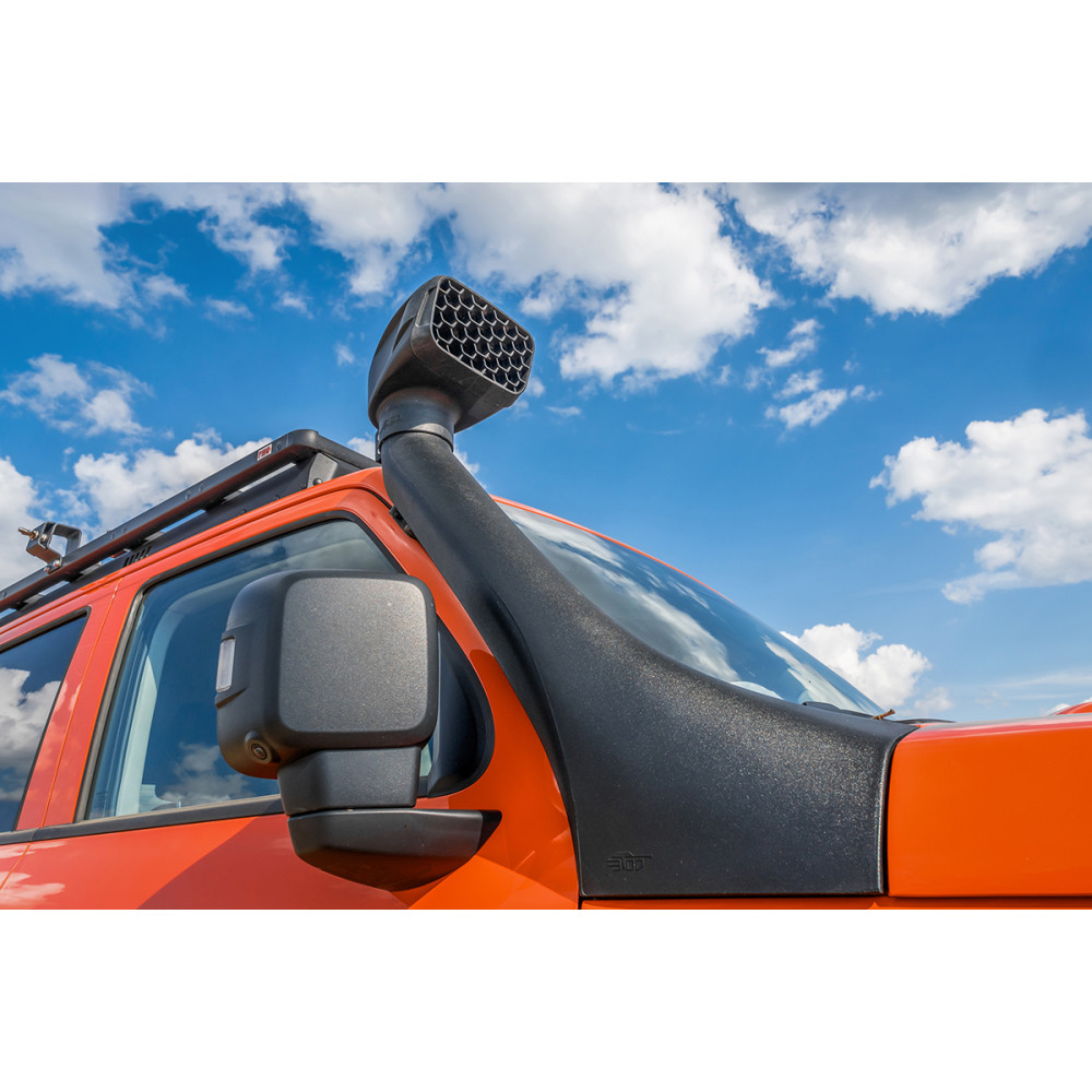 Также, благодаря высоко расположенной точке забора воздуха, обеспечивается поступление в двигатель более чистого воздуха, при езде по пыльным дорогам. Что увеличивает ресурс воздушного фильтра и снижает нагрузку на двигатель.