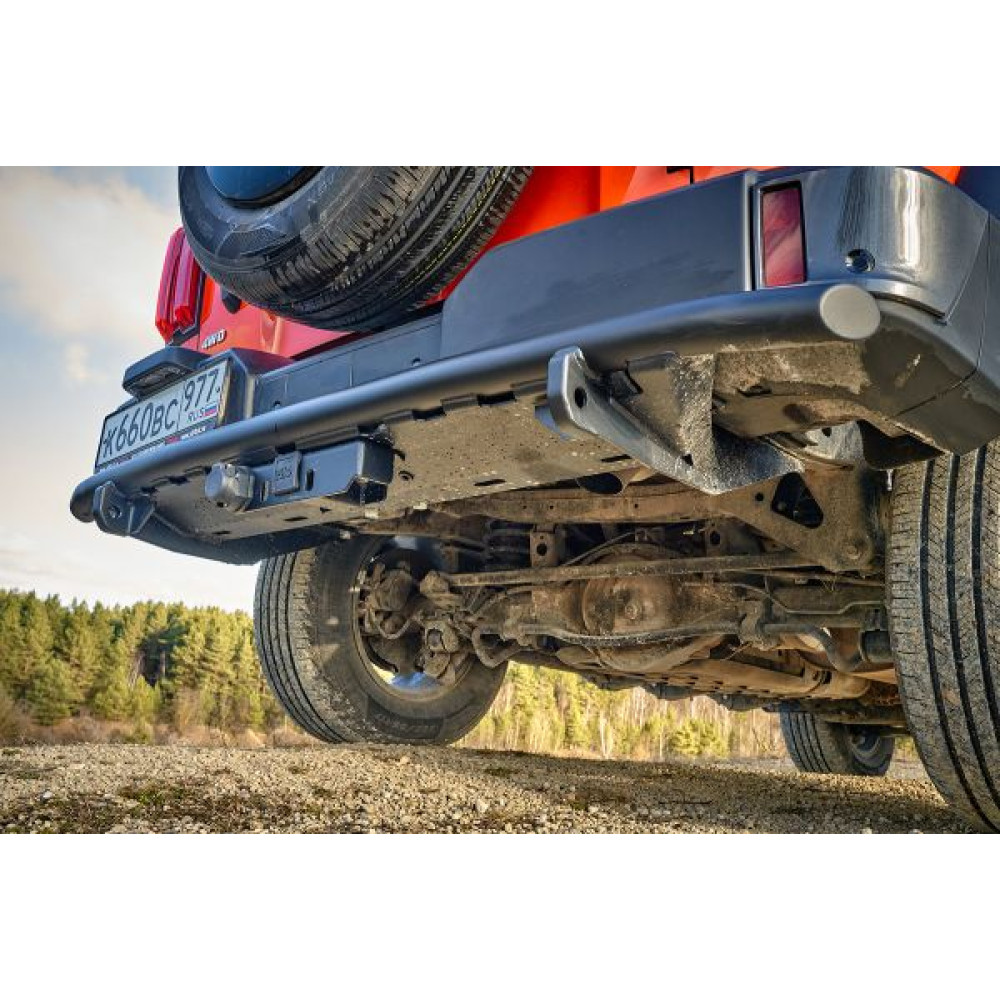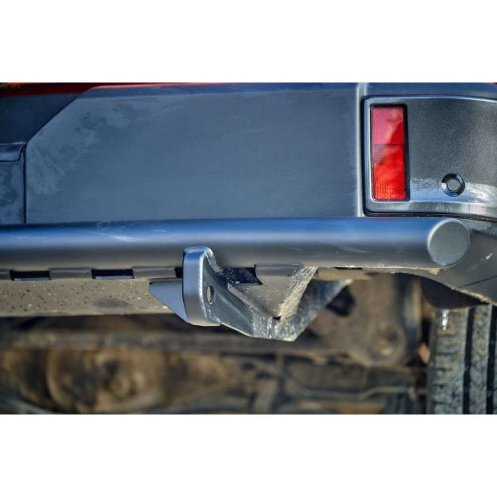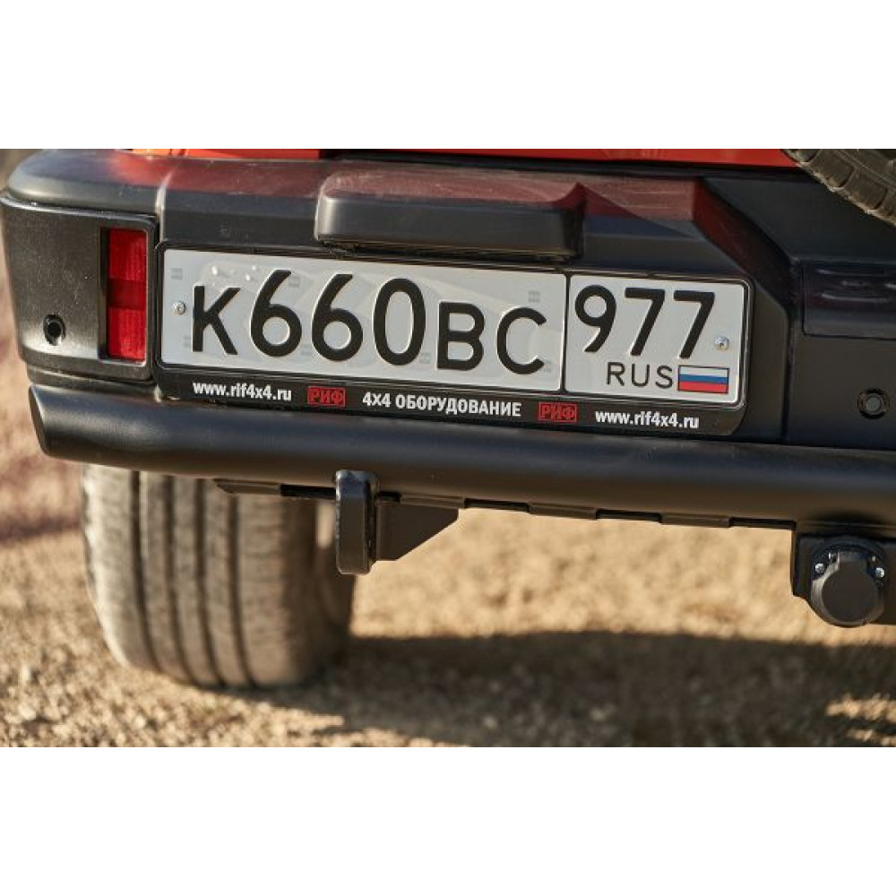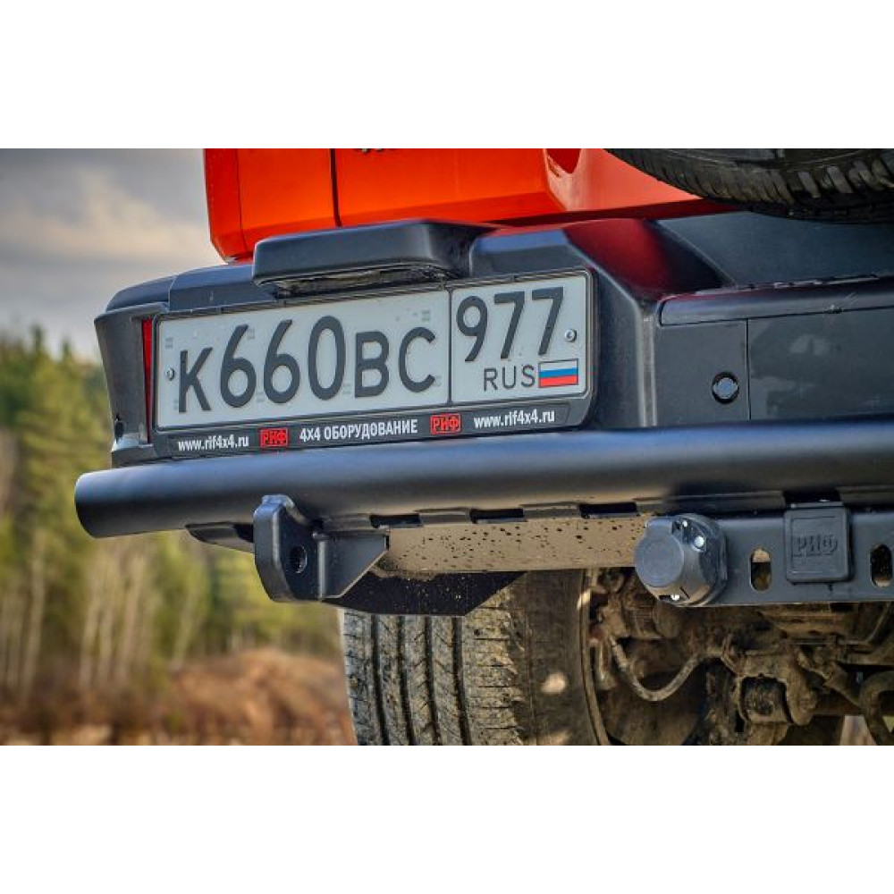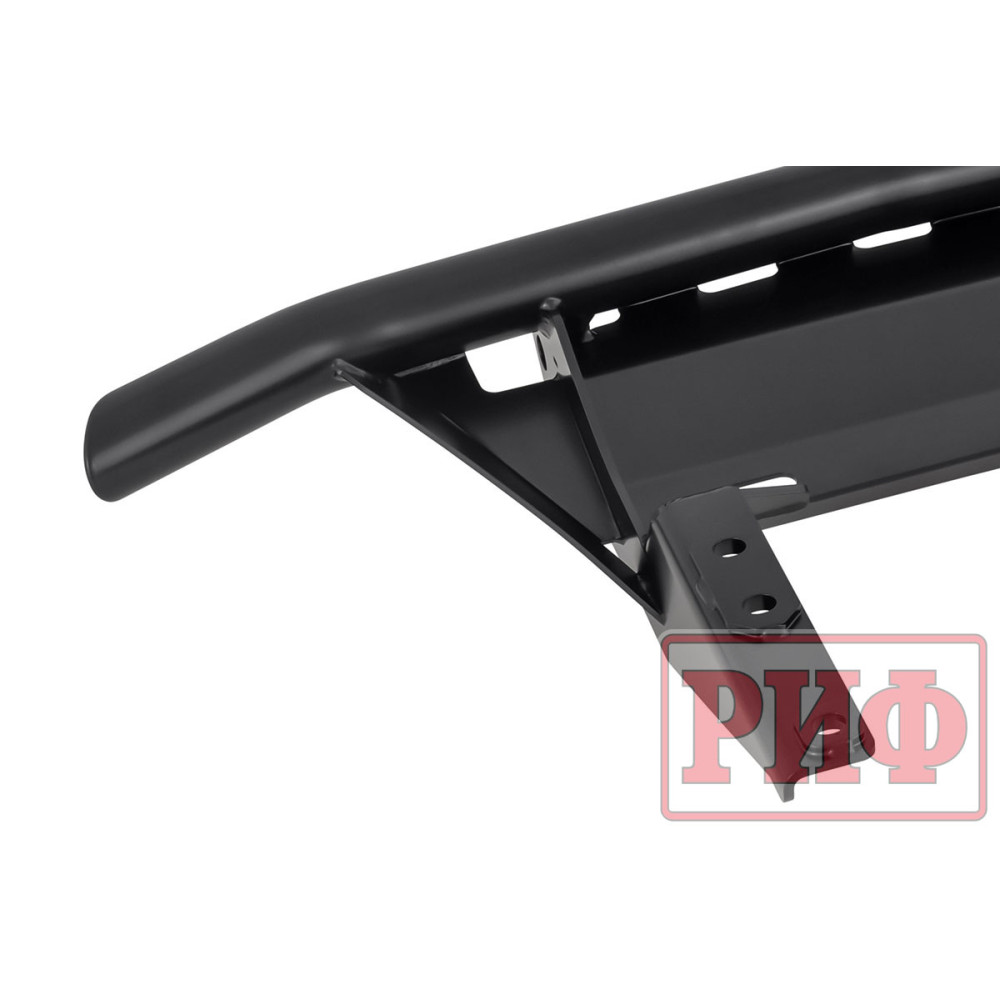 Задний силовой бампер/защита штатного бампера РИФ надежно защитит кузов автомобиля на бездорожье или в городе в случае непредвиденных инцидентов. Бампер оборудован упорами под хай джек и буксирными проушинами для работы с рывковой или буксировочной стропой.