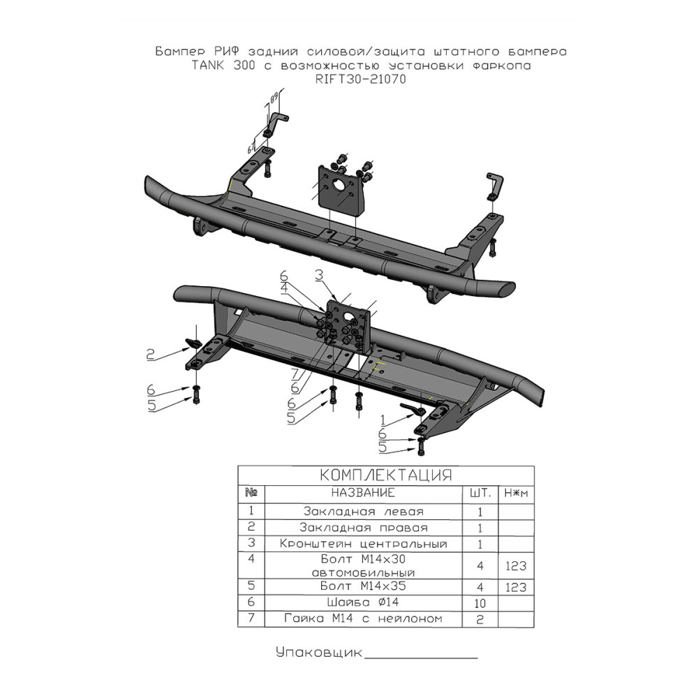 Бампер РИФ задний силовой/защита штатного бампера TANK 300 с возможностью установки фаркопа 0 33310р.
