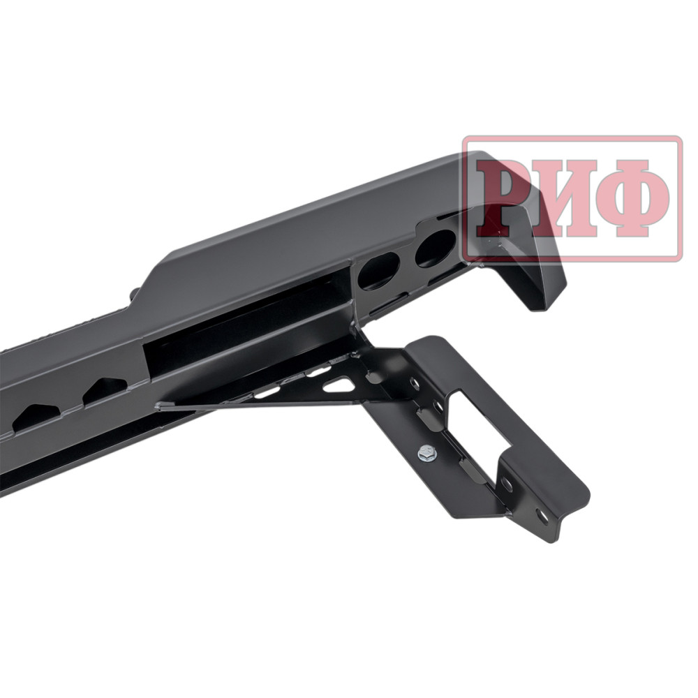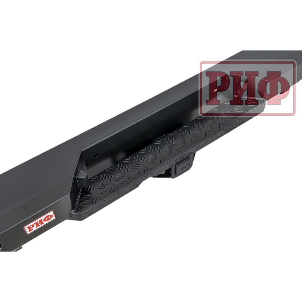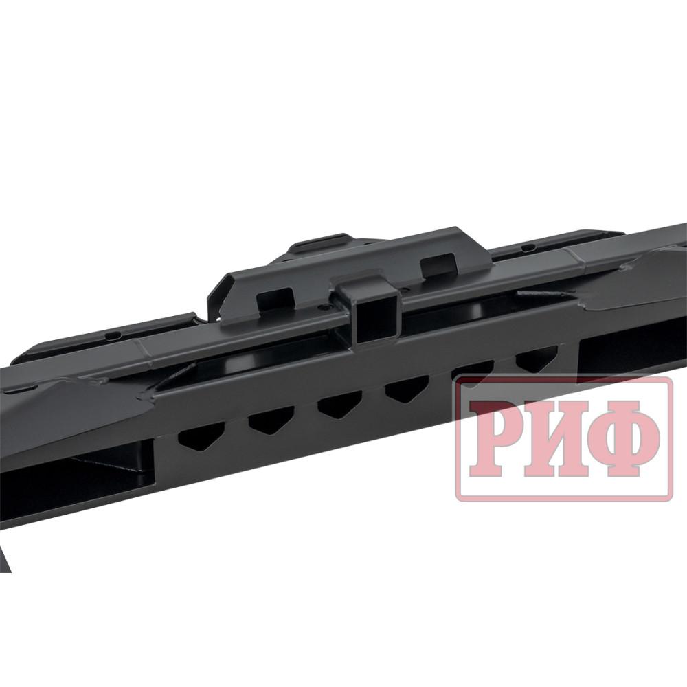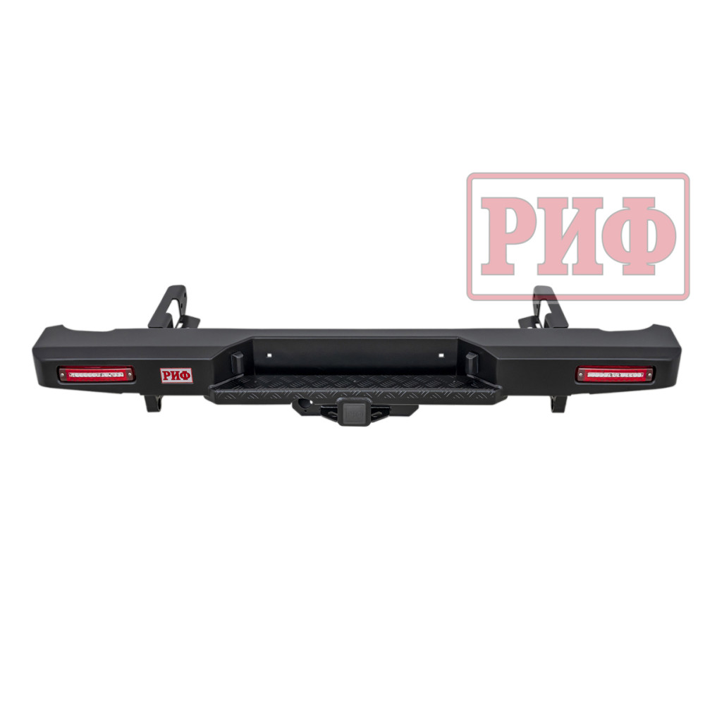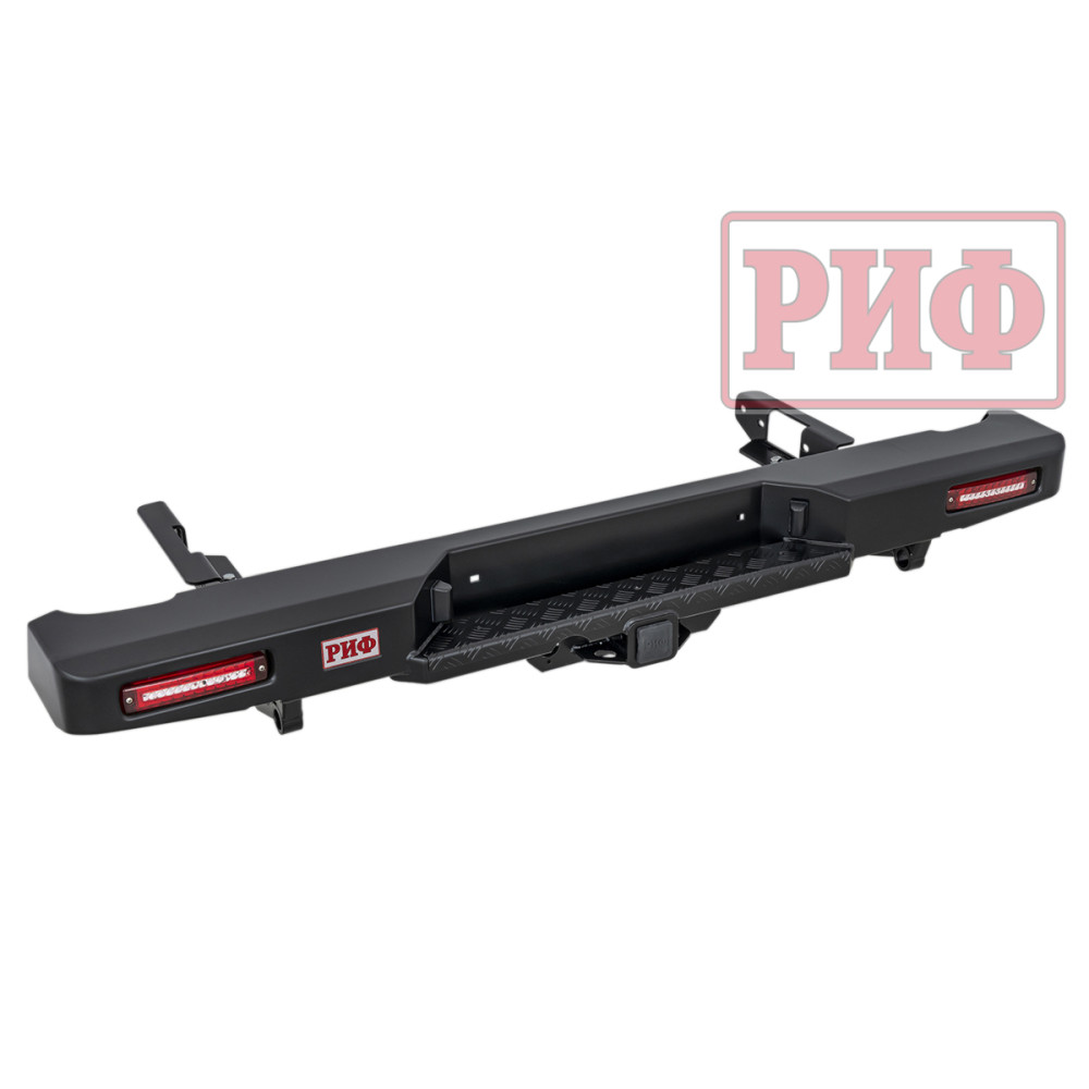 Задний силовой бампер РИФ надежно защитит кузов автомобиля на бездорожье или в городе в случае непредвиденных инцидентов. Бампер оборудован упорами под хай джек и буксирными проушинами для работы с рывковой или буксировочной стропой.
