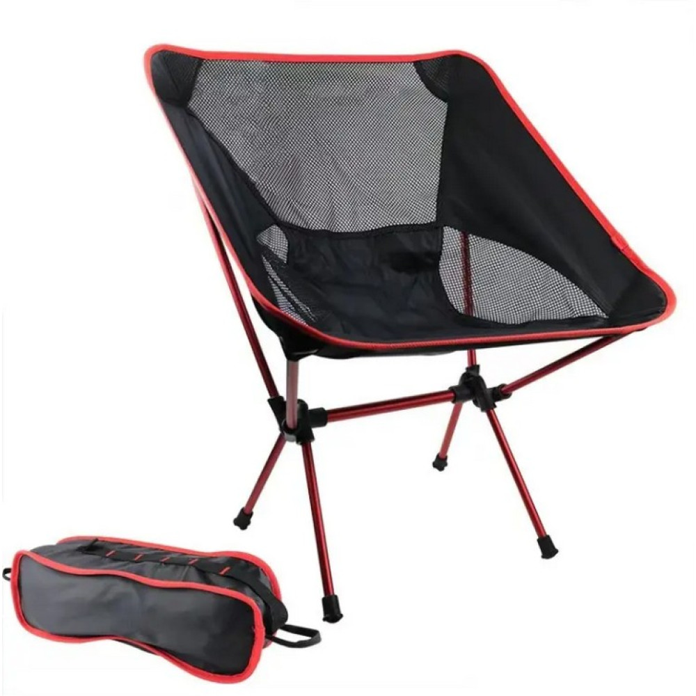 Кресло туристическое YL05 складное (компактное и легкое), черное, красные ножки, до 110 кг