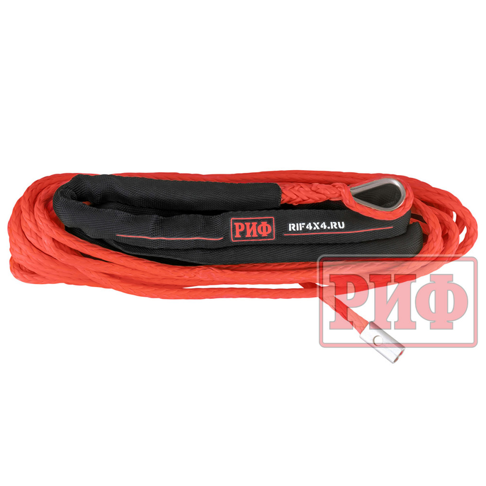 Синтетический трос РИФ изготовлен из UHMWPE(Ultrahigh molecular weight polyethylene – Сверхвысокомолекулярный полиэтилен высокой плотности) и он также прочен, как стальной, но при этом он очень легкий, износостойки и абсолютно безопасный в использовании – даже если он порвется под нагрузкой, тяжелых травм человеку и автомобилю не нанесет благодаря мягкости и маленькому весу.