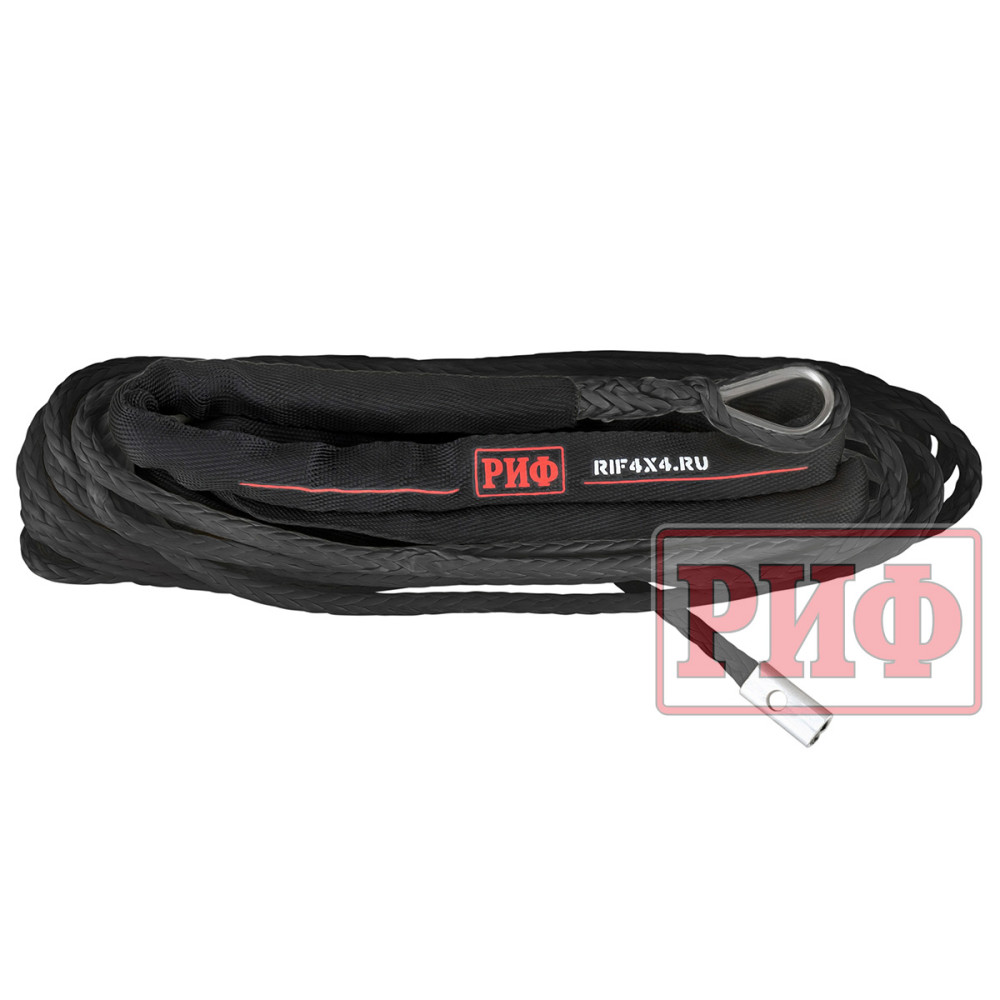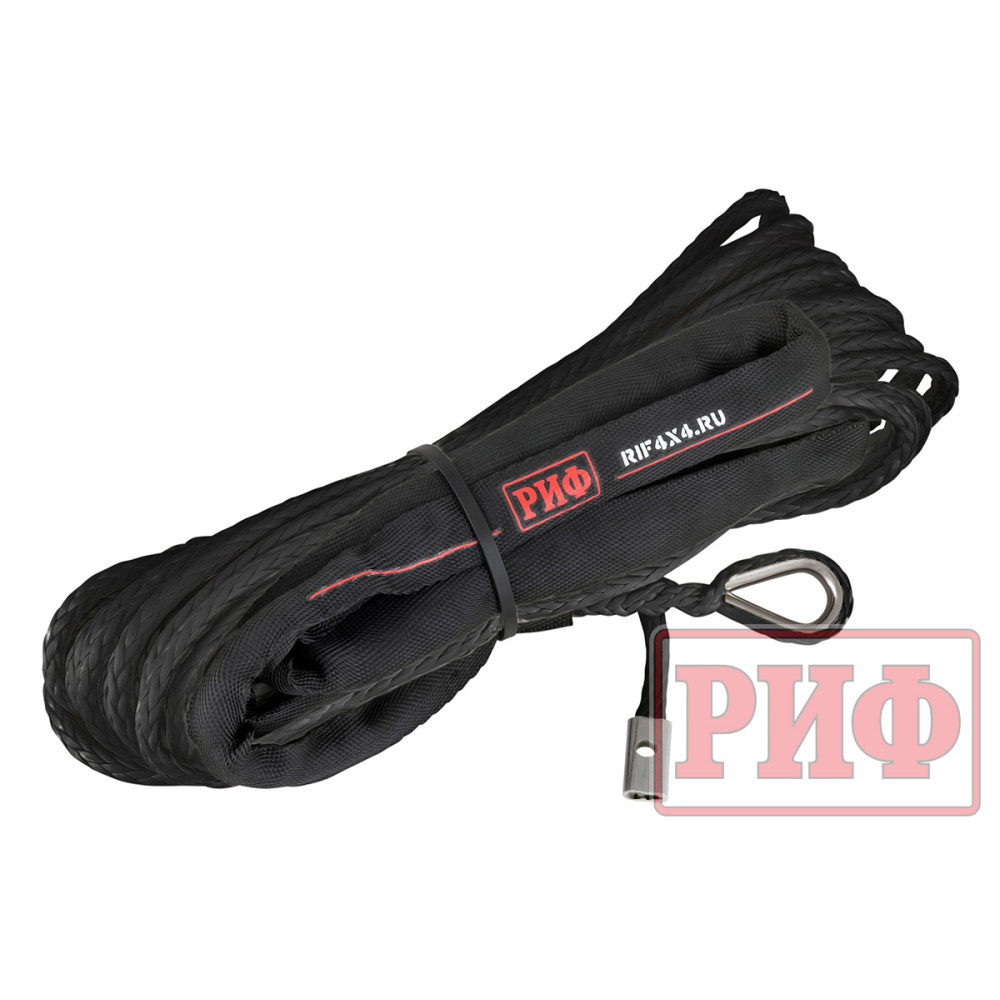 Синтетический трос РИФ изготовлен из UHMWPE(Ultrahigh molecular weight polyethylene – Сверхвысокомолекулярный полиэтилен высокой плотности) и он также прочен, как стальной, но при этом он очень легкий, износостойки и абсолютно безопасный в использовании – даже если он порвется под нагрузкой, тяжелых травм человеку и автомобилю не нанесет благодаря мягкости и маленькому весу.