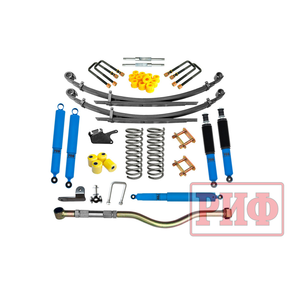 Все компоненты лифт-комплектов РИФ разработаны специально для эксплуатации внедорожника в тяжелых условиях на различных дорожных покрытиях.