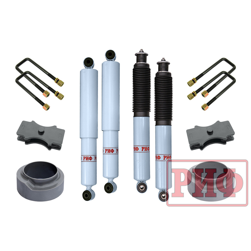 Все компоненты лифт-комплектов РИФ разработаны специально для эксплуатации внедорожника в тяжелых условиях на различных дорожных покрытиях.
