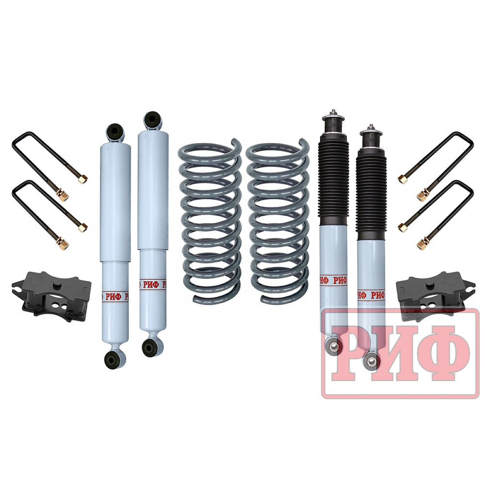 Все компоненты лифт-комплектов РИФ разработаны специально для эксплуатации внедорожника в тяжелых условиях на различных дорожных покрытиях.