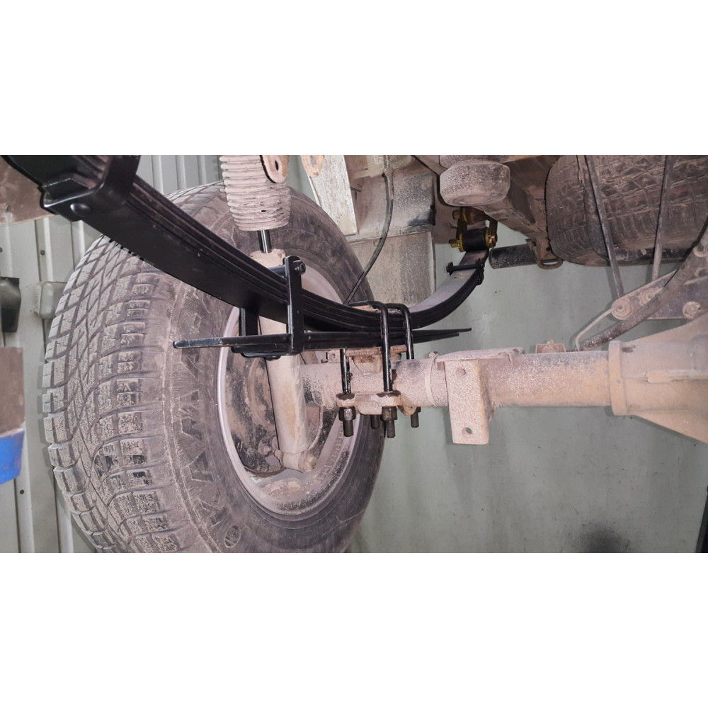Благодаря рессорам РИФ внедорожник получает лифт подвески около 50 мм, что позволяет поставить колеса большего диаметра, и повышенную грузоподъемность. С рессорами РИФ подвеска внедорожника великолепно «держит» любой рельеф – и тяжелое бездорожье, и разбитый грейдер, и пересеченную местность, а также и обычную езду в быстром городском режиме - автомобиль остается комфортабельным и устойчивым, он отлично управляется и не валится наружу поворота.