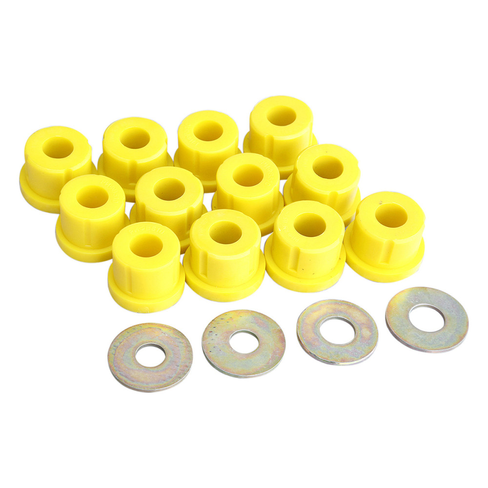В штатные рессоры данные втулки могут быть установлены, если они изначально предназначены под установку резиновых втулок диаметром 42 мм, а не сайлентблоков (резинометаллический шарнир диаметром 45мм). Диаметр втулок 42 мм. В комплекте 12 втулок и 4 упорных шайбы. Упорные шайбы устанавливаются на болт крепления рессоры к раме.