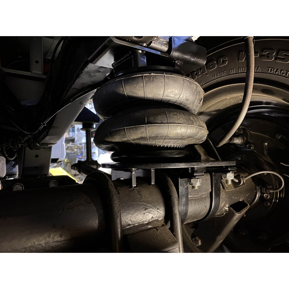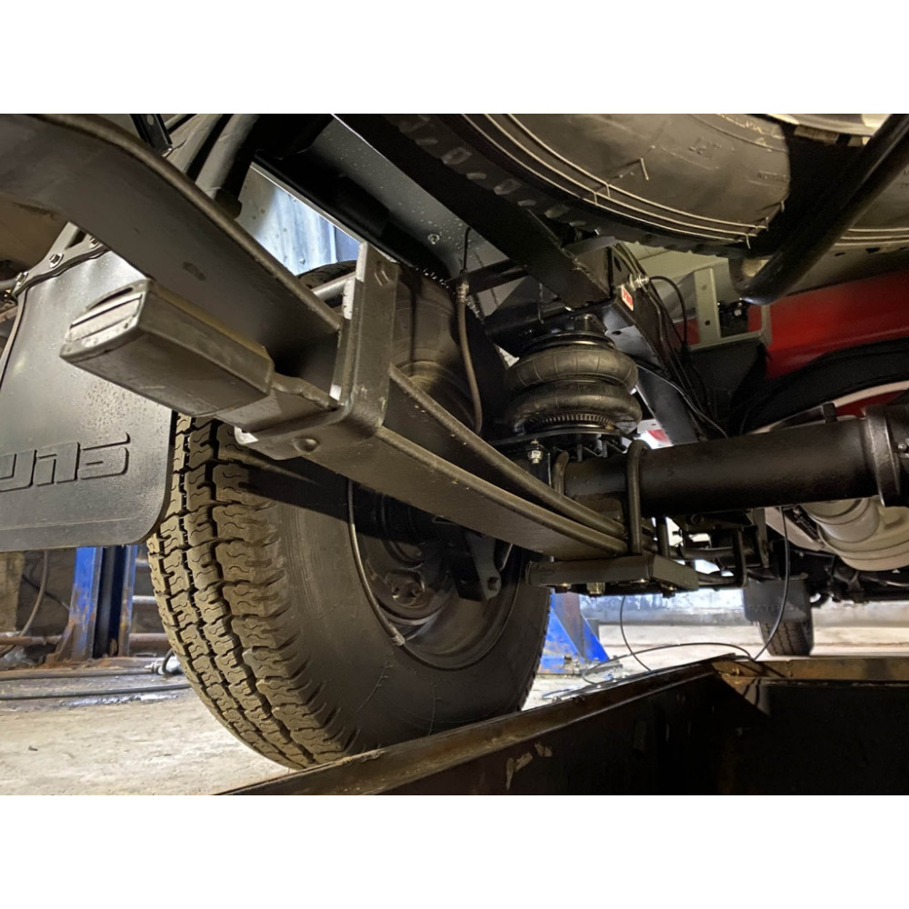 В комплект поставки включено: две пневмоподушки, кронштейны для крепления, необходимый крепеж и пневмофитинги, пневмомагистраль, клапаны управления давлением.