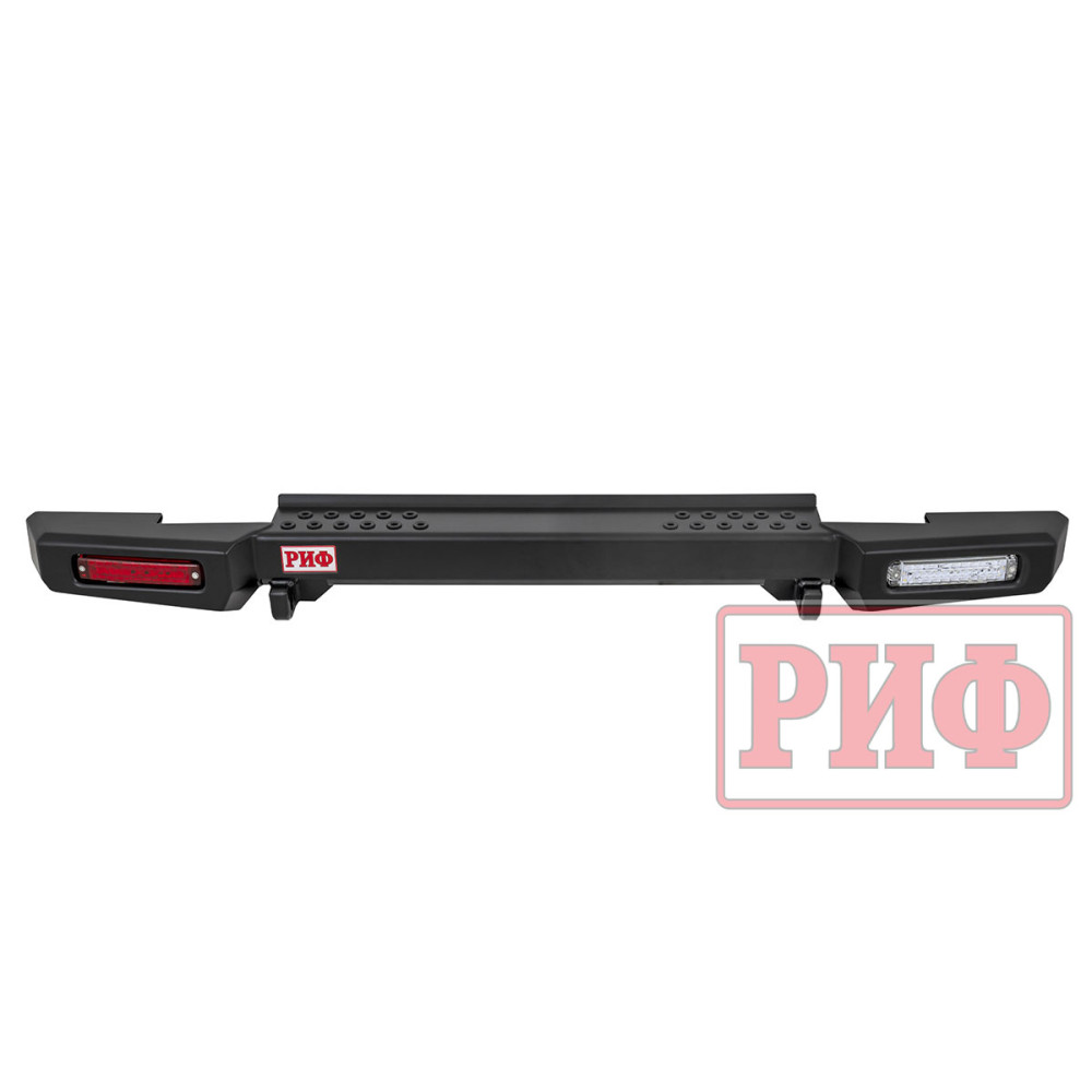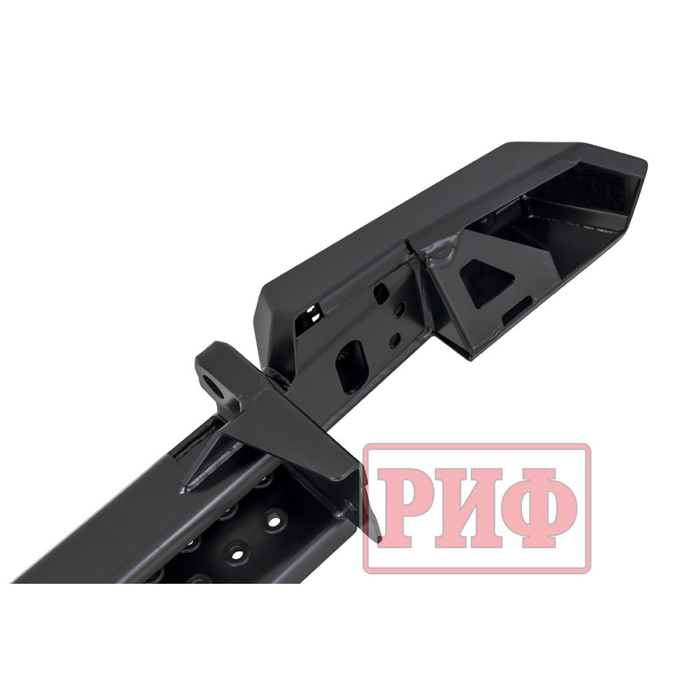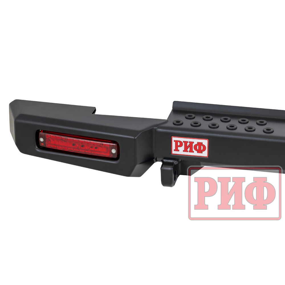 Задний силовой бампер РИФ надежно защитит кузов автомобиля на бездорожье или в городе в случае непредвиденных инцидентов. Бампер оборудован упорами под хай джек и буксирными проушинами для работы с рывковой или буксировочной стропой.