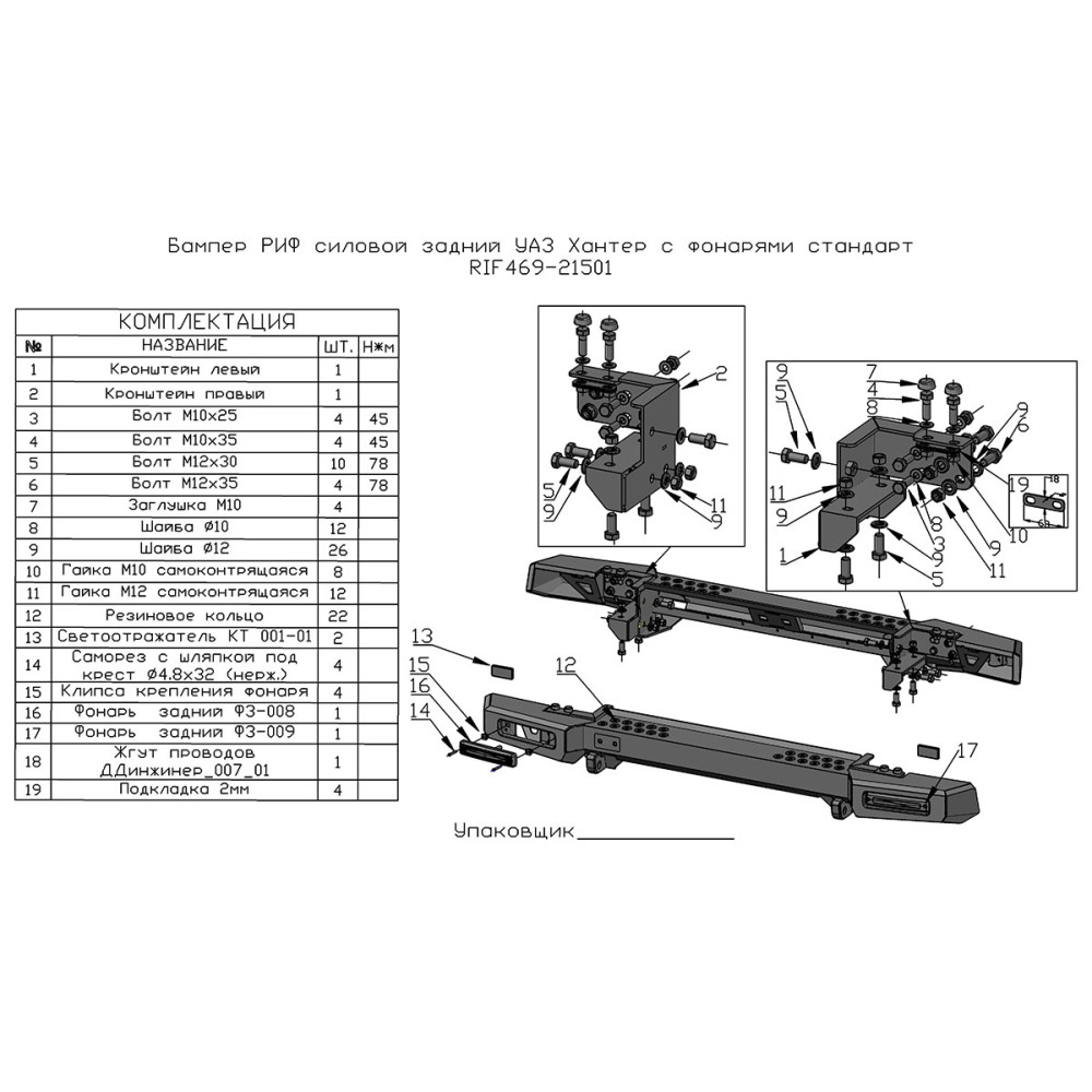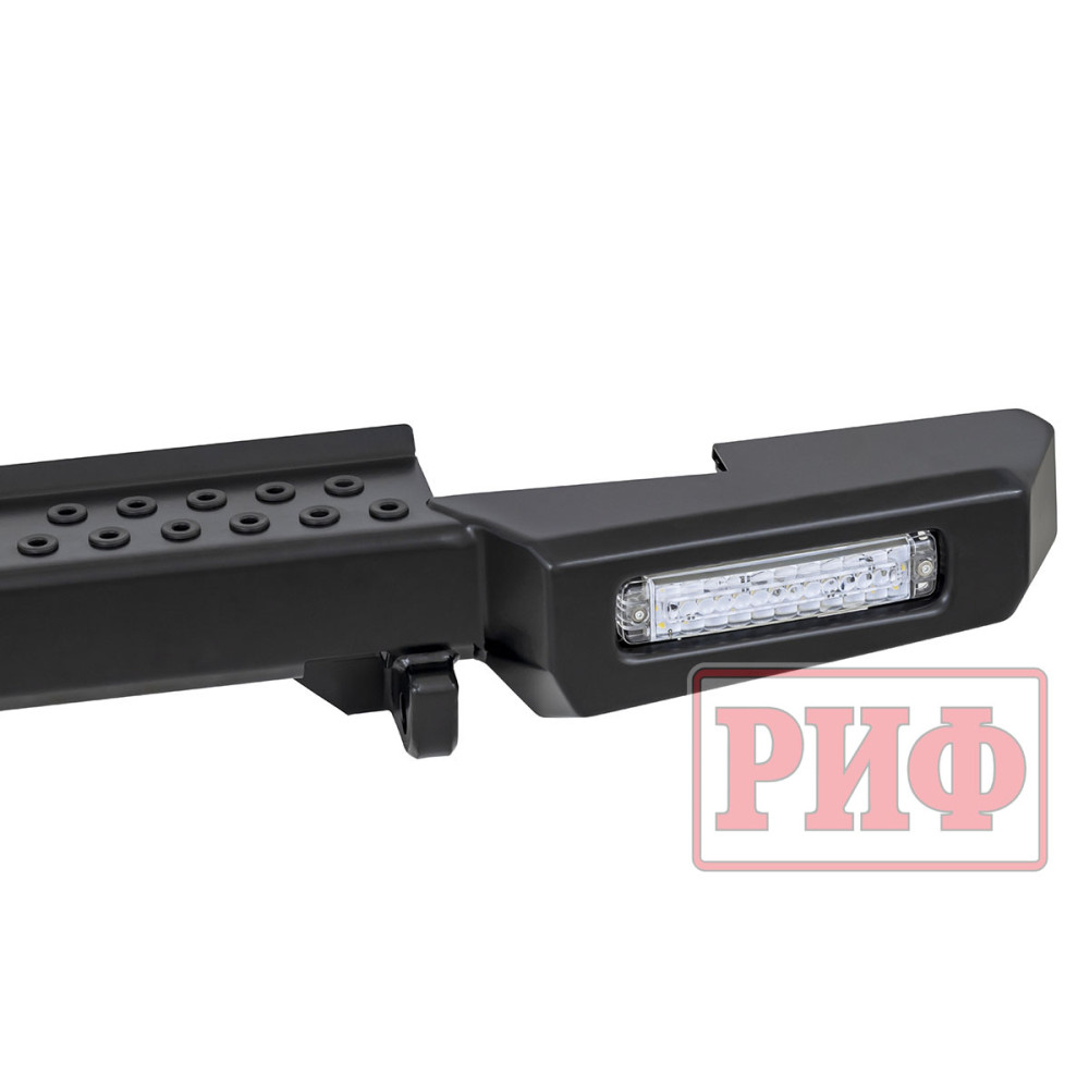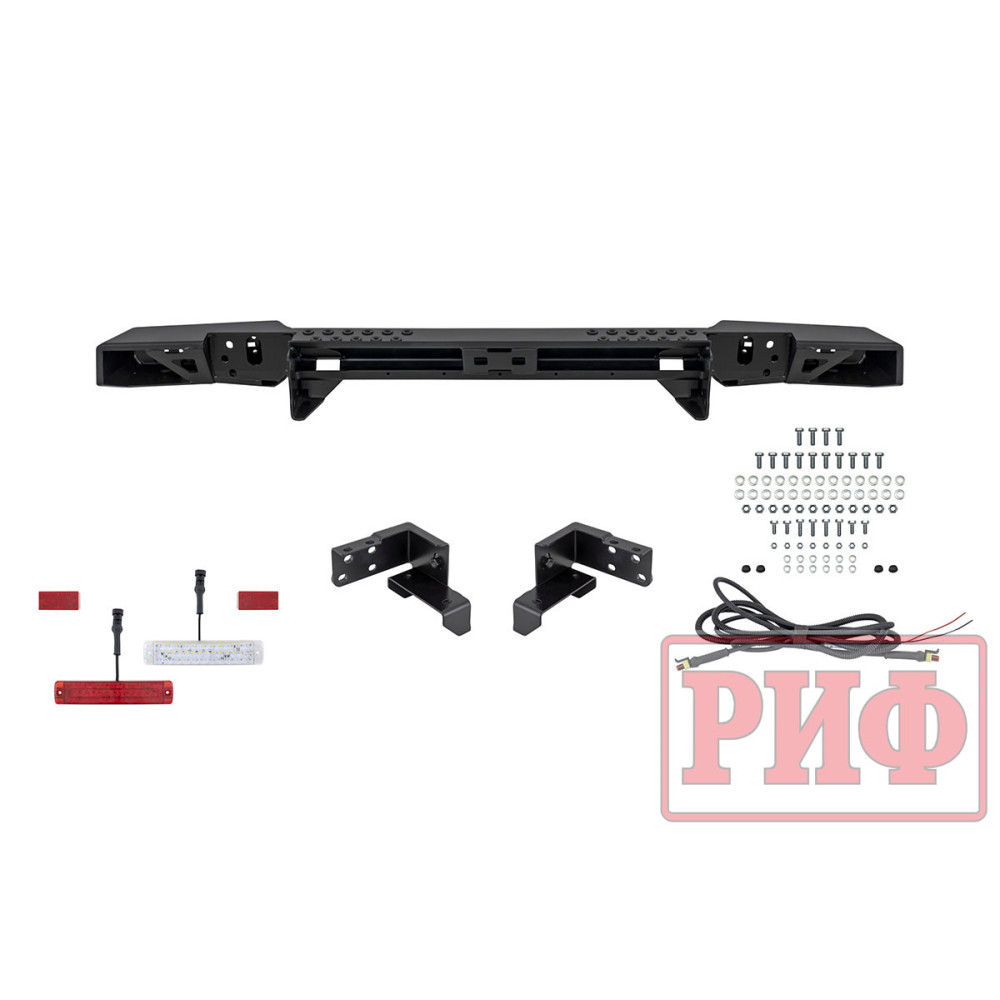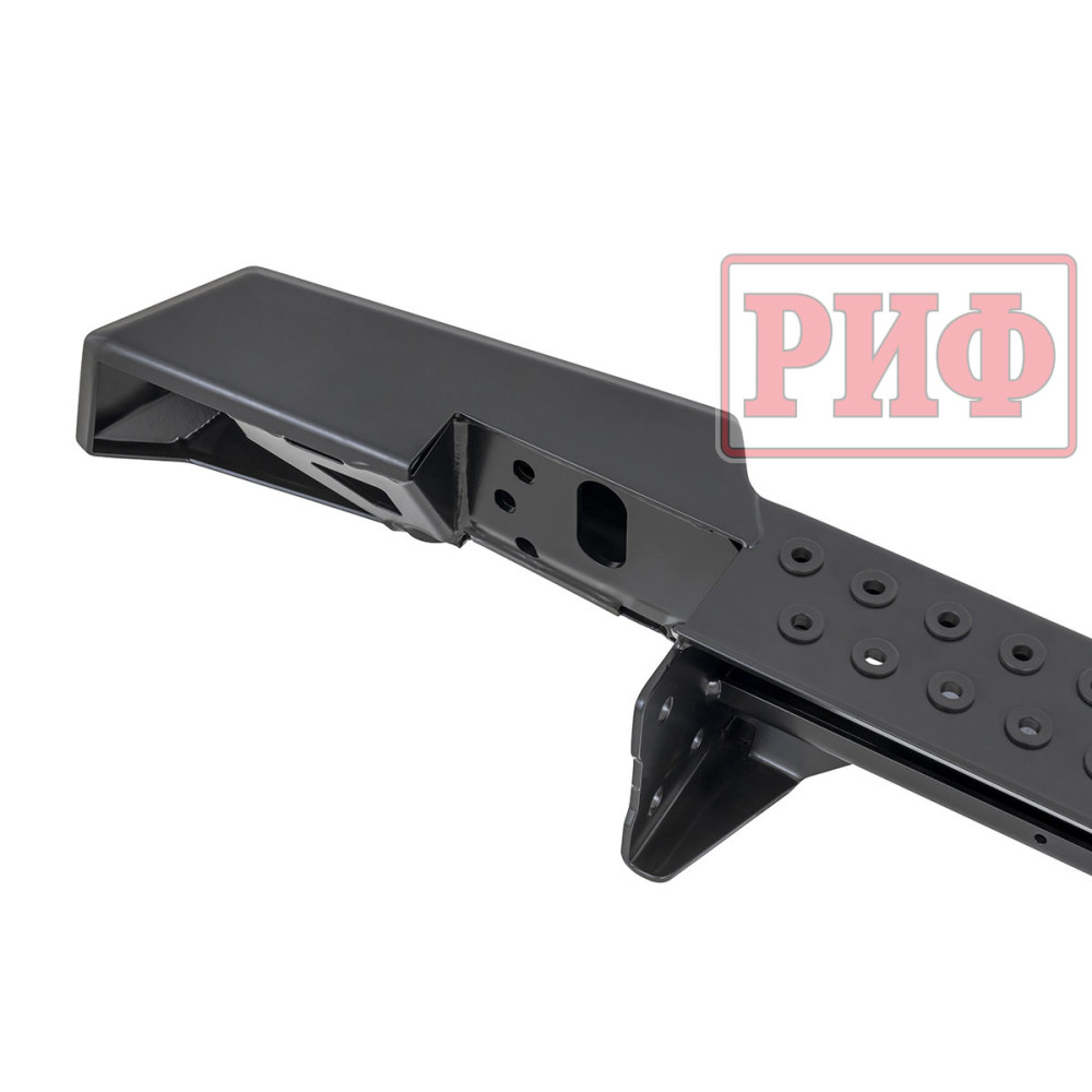 Задний силовой бампер РИФ надежно защитит кузов автомобиля на бездорожье или в городе в случае непредвиденных инцидентов. Бампер оборудован упорами под хай джек и буксирными проушинами для работы с рывковой или буксировочной стропой.