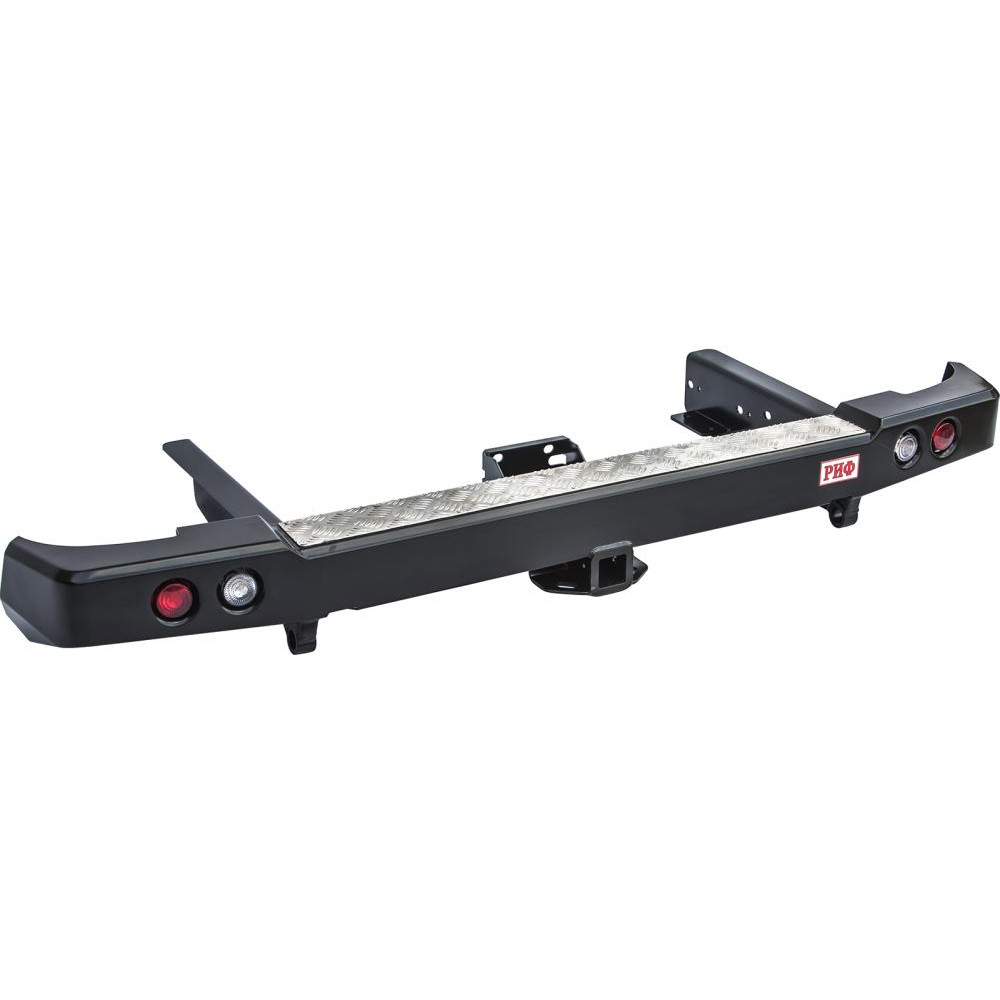 Бампер РИФ силовой задний УАЗ Патриот Пикап 2005+ с квадратом под фаркоп и фонарями, лифт 65 мм