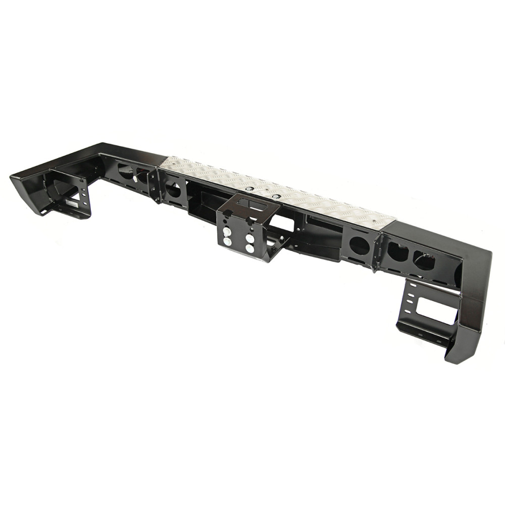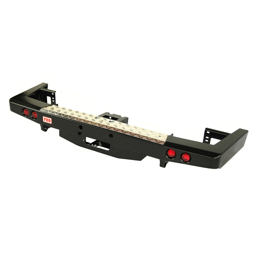 Задний силовой бампер РИФ надежно защитит кузов автомобиля на бездорожье или в городе в случае непредвиденных инцидентов. Бампер оборудован упорами под хай джек и буксирными проушинами для работы с рывковой или буксировочной стропой.