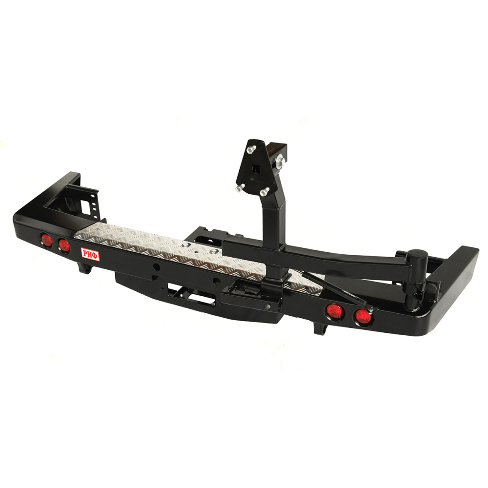 Задний силовой бампер РИФ надежно защитит кузов автомобиля на бездорожье или в городе в случае непредвиденных инцидентов. Бампер оборудован упорами под хай джек и буксирными проушинами для работы с рывковой или буксировочной стропой.
