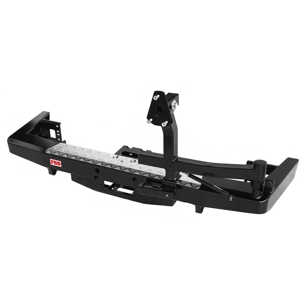 Задний силовой бампер РИФ надежно защитит кузов автомобиля на бездорожье или в городе в случае непредвиденных инцидентов. Бампер оборудован упорами под хай джек и буксирными проушинами для работы с рывковой или буксировочной стропой.