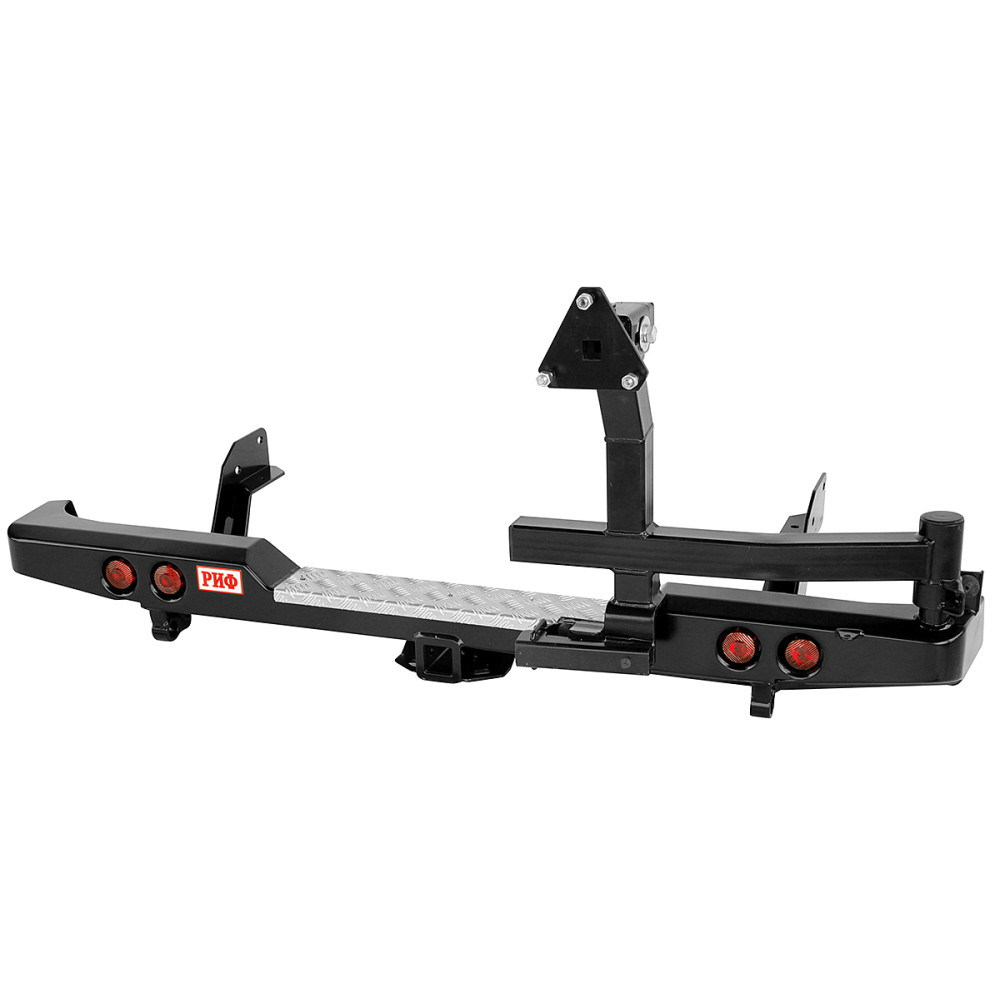 Задний силовой бампер РИФ надежно защитит кузов автомобиля на бездорожье или в городе в случае непредвиденных инцидентов. Бампер оборудован упорами под хай джек и буксирными проушинами для работы с рывковой или буксировочной стропой.