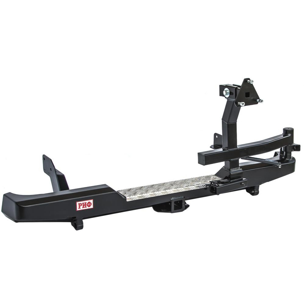 Задний силовой бампер РИФ надежно защитит кузов автомобиля на бездорожье или в городе в случае непредвиденных инцидентов. Бампер оборудован упорами под хай джек и буксирными проушинами для работы с рывковой или буксировочной стропой.