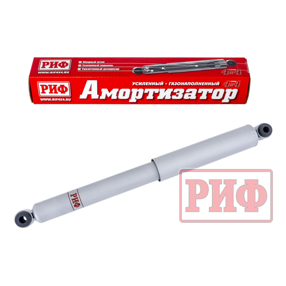 Газ, находящийся под давлением в компенсационной камере наружной трубы, позволяет повысить устойчивость амортизатора к высоким нагрузкам. Масло под давлением газа менее подвержено эффекту кавитации, а значит и меньше вспенивается, в отличие от обычного гидравлического амортизатора. Также, благодаря увеличенному масляному резервуару с большим количеством масла, усиленному штоку и поршню, амортизаторы "РИФ" обладают длительным рабочим ресурсом и обеспечивают великолепную стабильность рабочих характеристик при длительной езде по дорогам общего пользования, отличную курсовую устойчивость, хорошую артикуляцию подвески и приятную плавность хода на бездорожье.